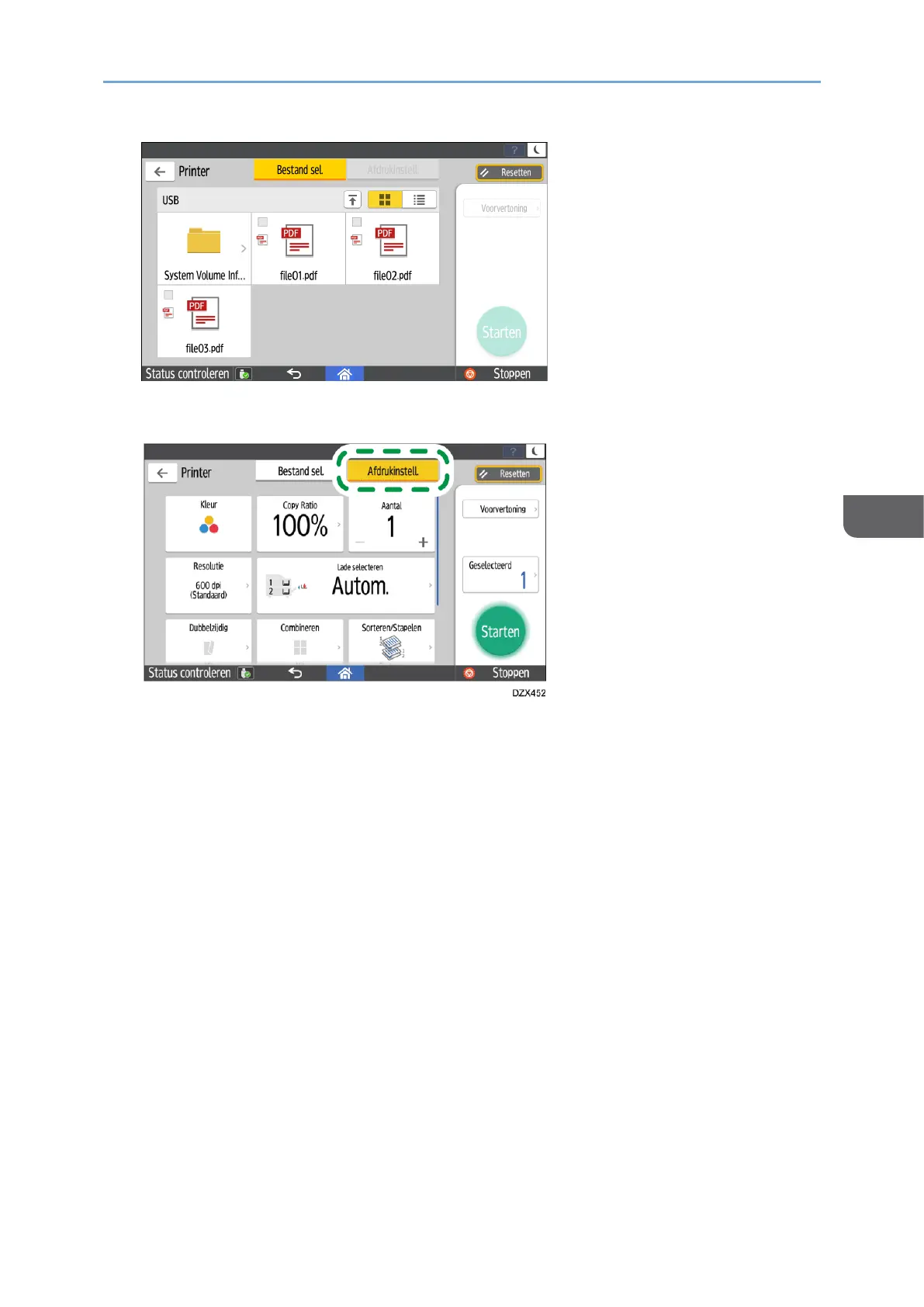 5. Druk indien nodig op [Afdrukinstell.] om de instellingen voor dubbelzijdig