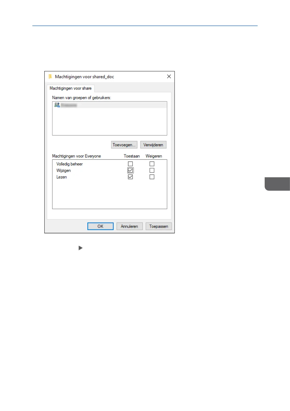 toegangsrechten wilt opgeven voor de map om andere gebruikers en groepen