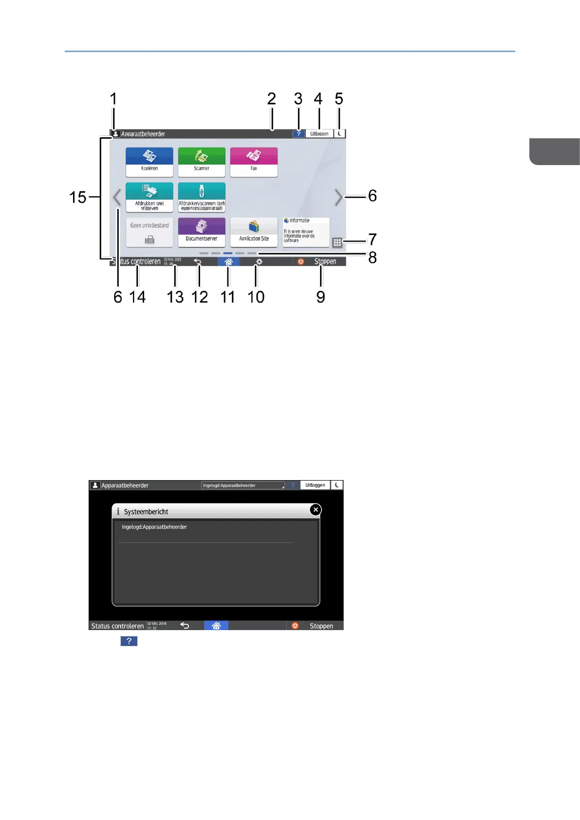 Geeft systeem- en toepassingsberichten weer. Als er twee of meer berichten zijn,