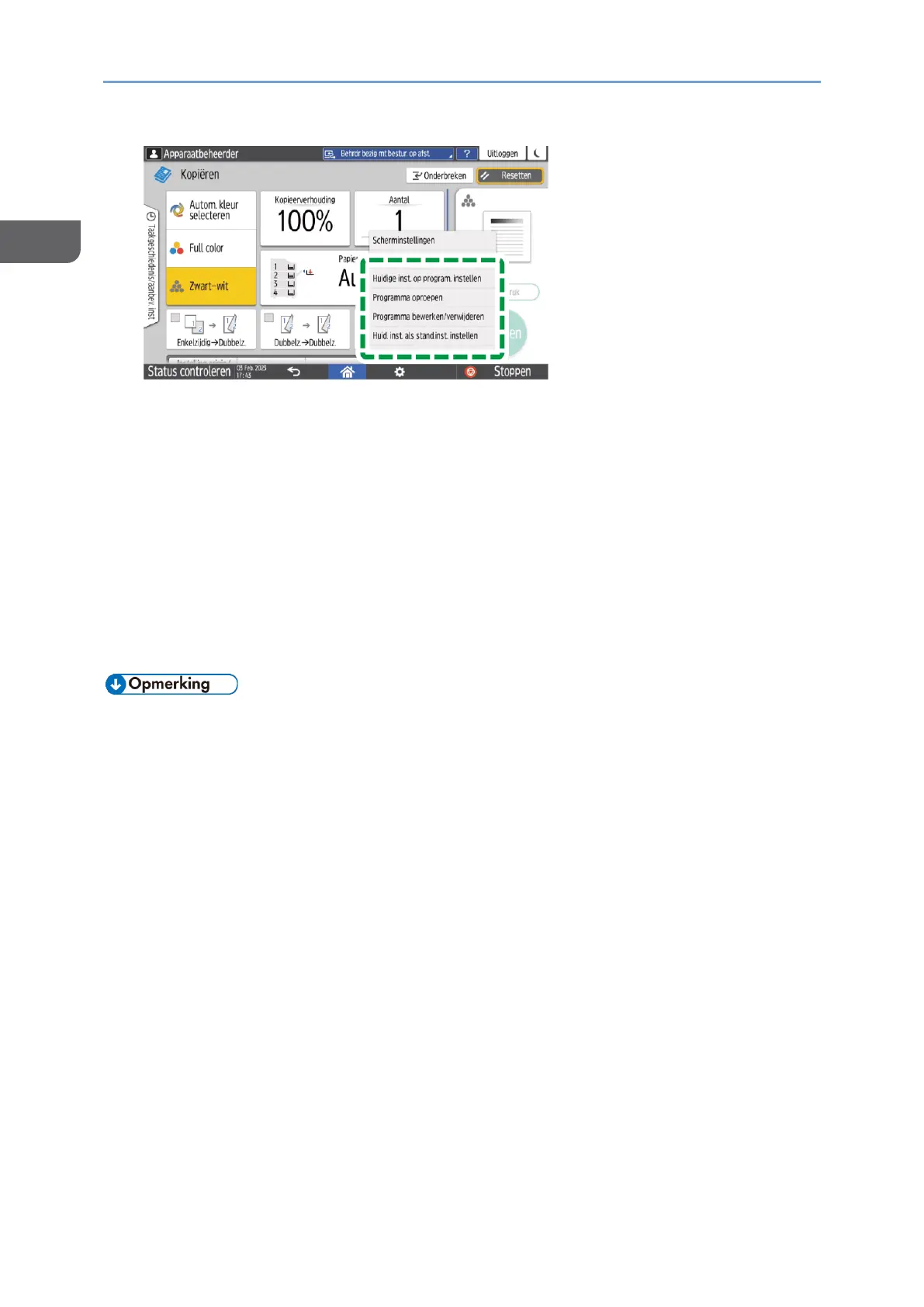 het apparaat de instellingen toe en wordt de functie die in het programma is