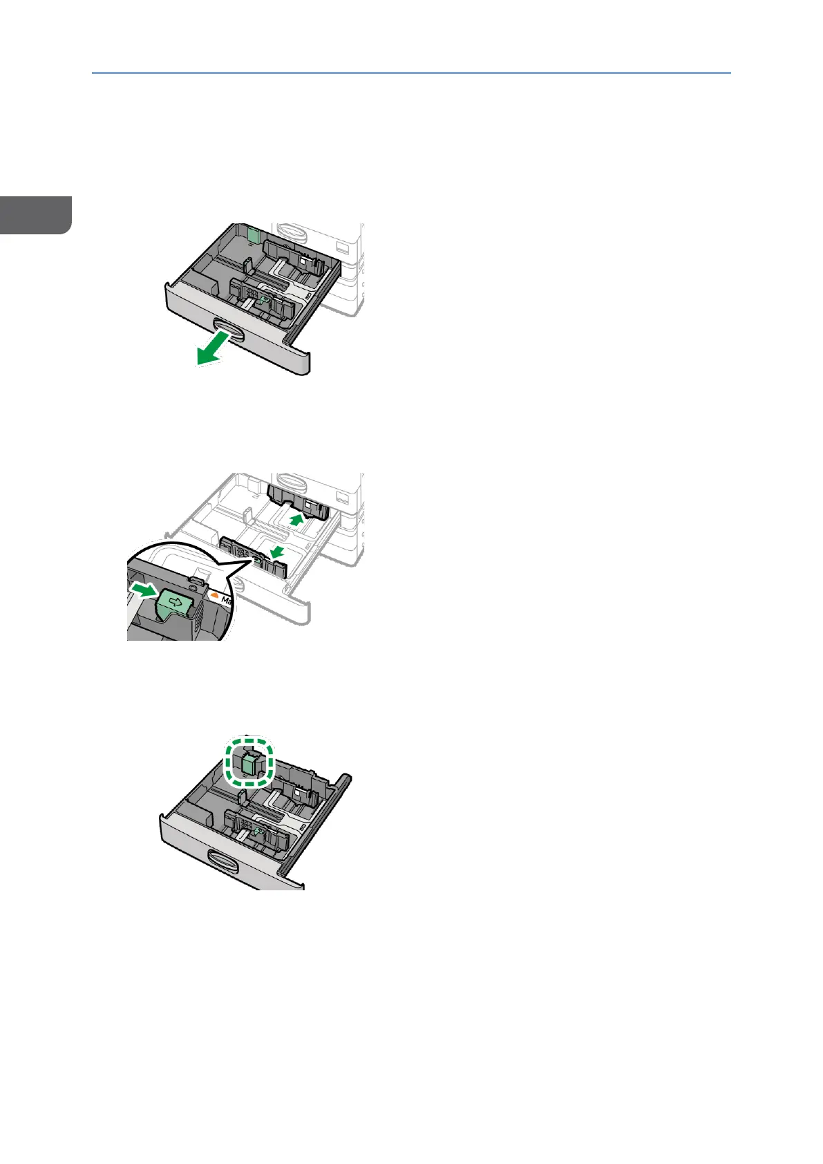Plaats papier op dezelfde manier in elke papierlade. In de volgende voorbeeldprocedure