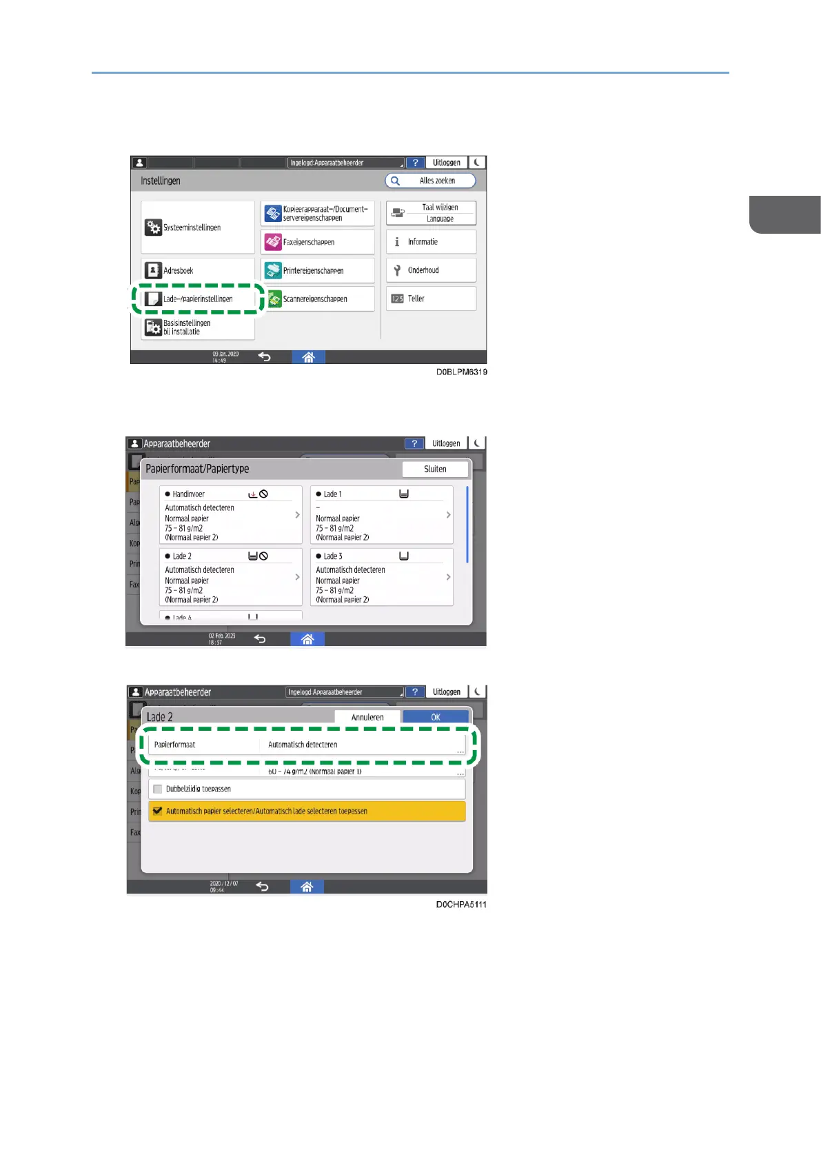 Het formaat van het papier dat u kunt gebruiken in lade 1, lade 3 (LCT) en de