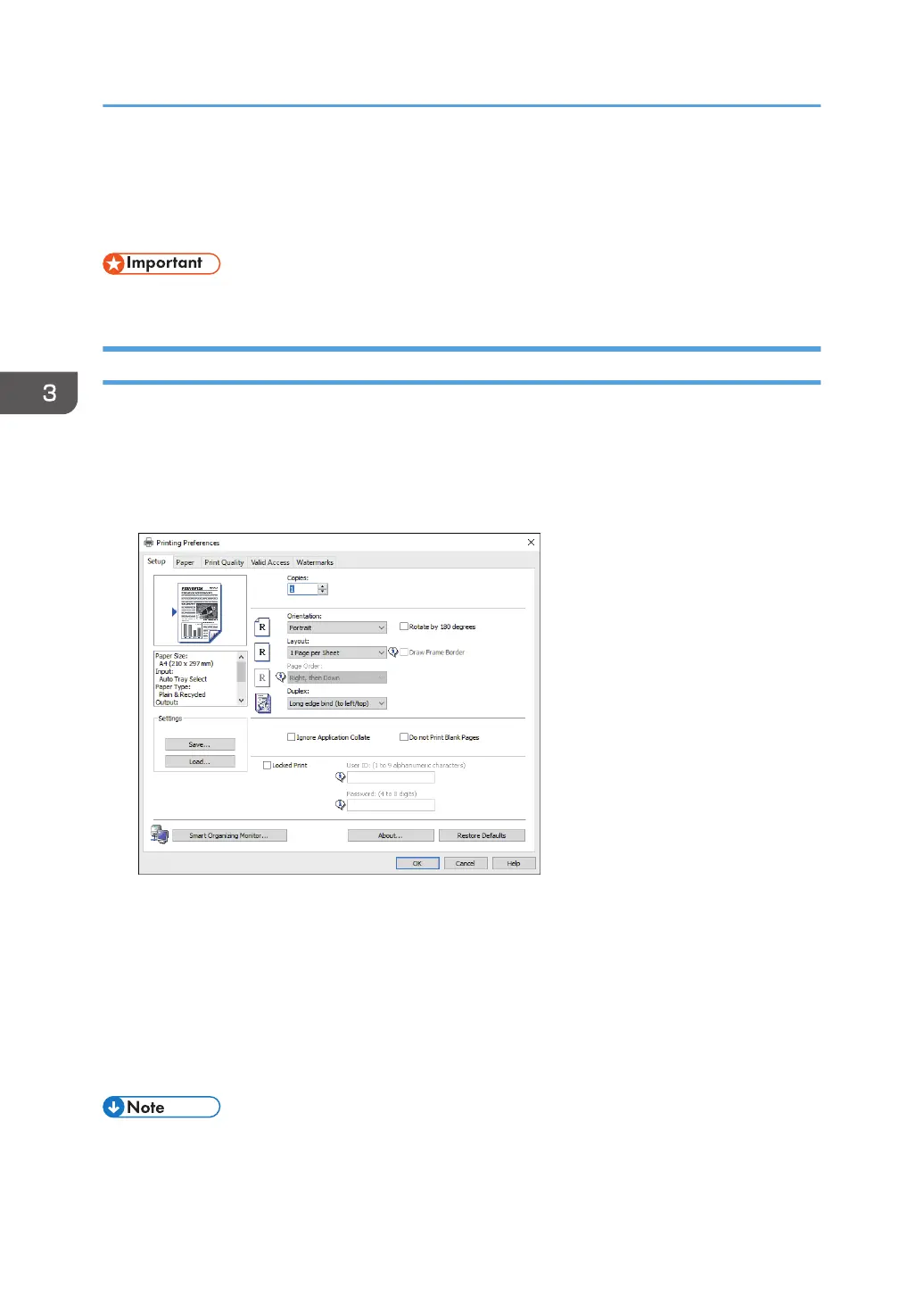 • When printing a job is restricted, specify the user code in the printer properties of the printer driver