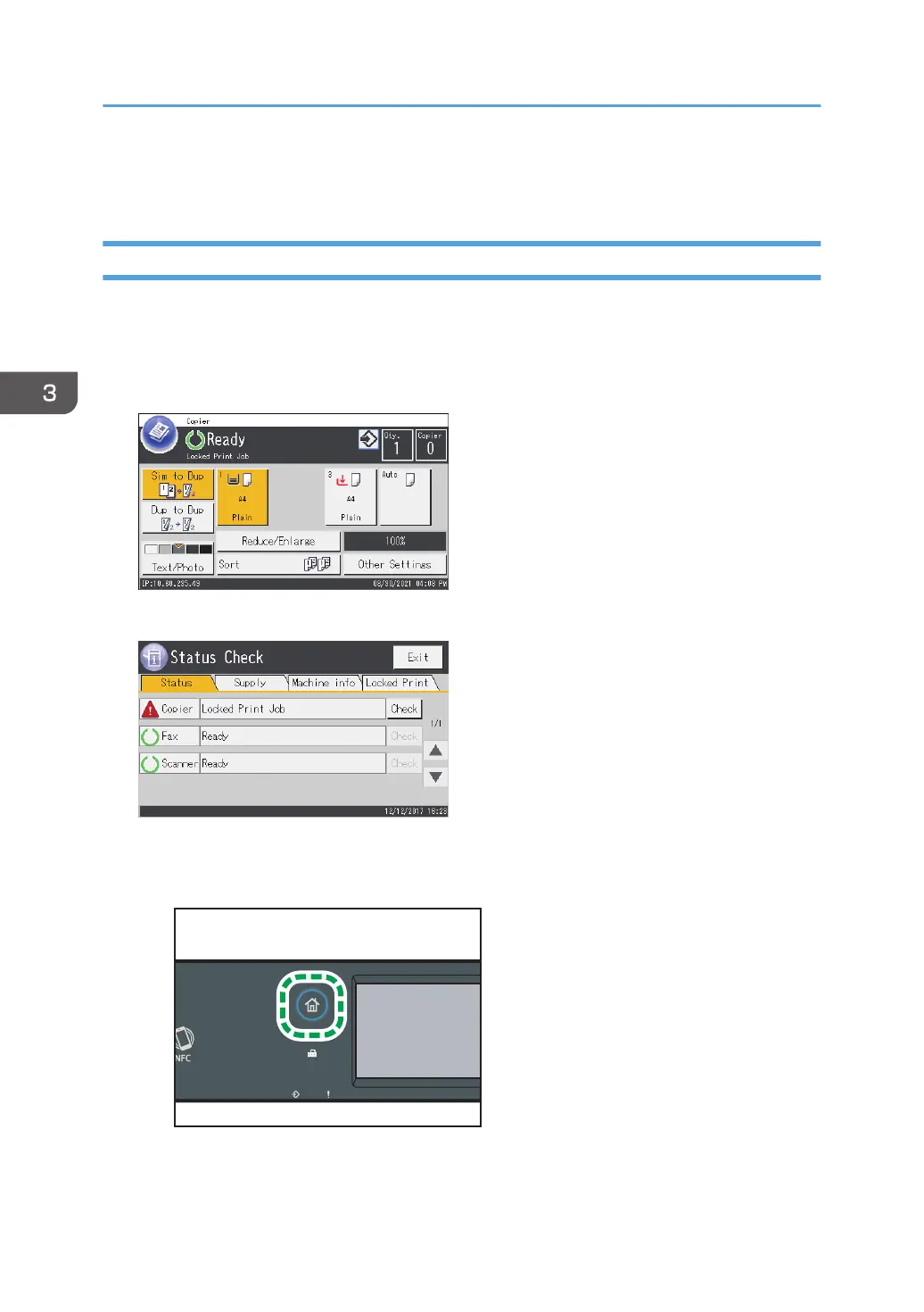 Also, "Locked Print Job" appears on the [Status] screen.