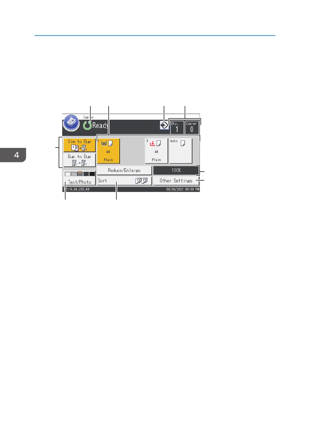 Displays the numbers of copies set and copies made. You can change the copy quantity using the