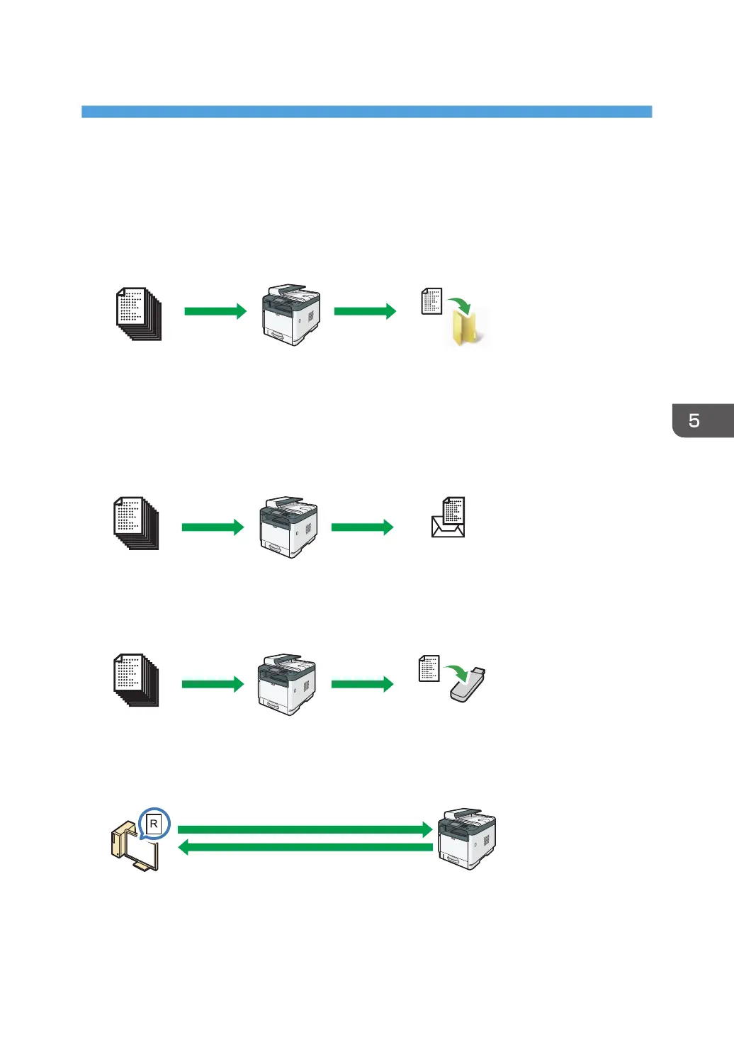 The scanned documents can be also saved to an FTP server. For details, see page 155