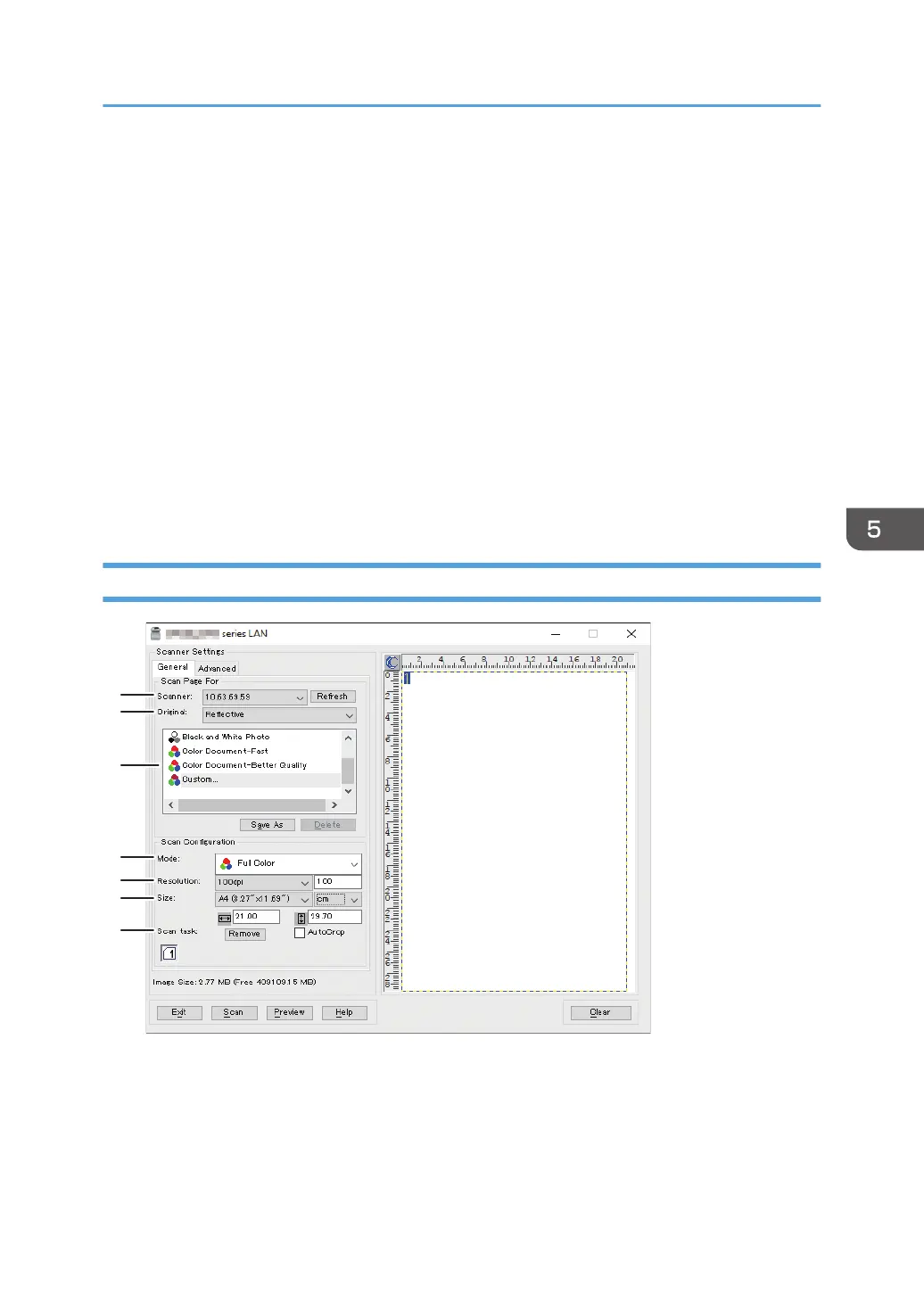 The Scanner Control dialog box is used to control the scanner using the TWAIN driver. To open the