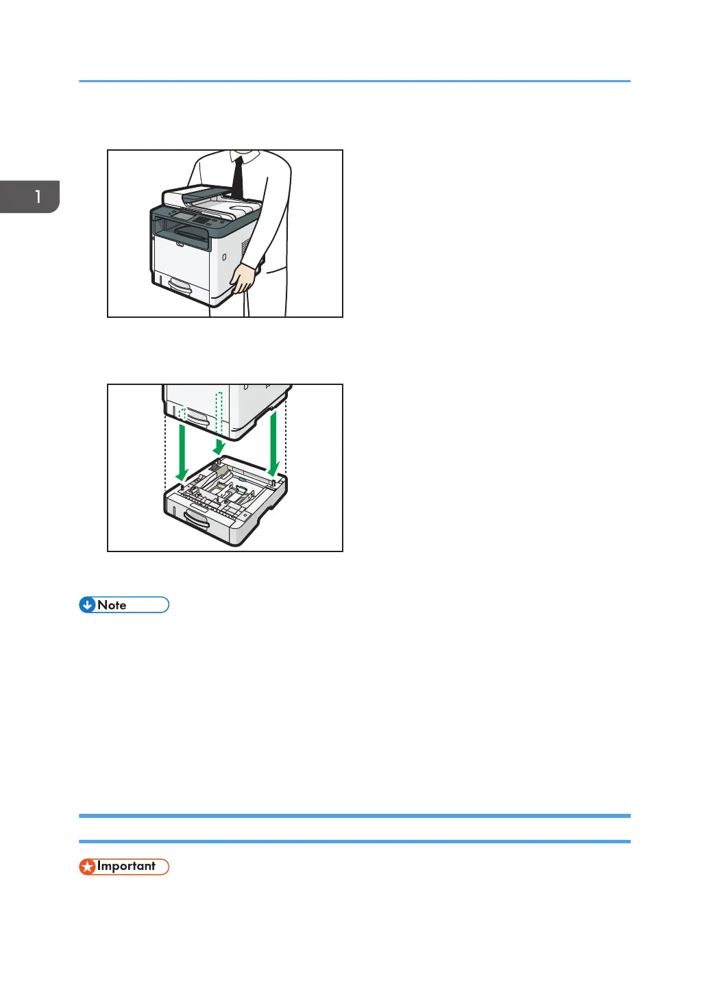 • After installing the optional paper feed unit, select Tray 2 in the printer driver. For details, see the
