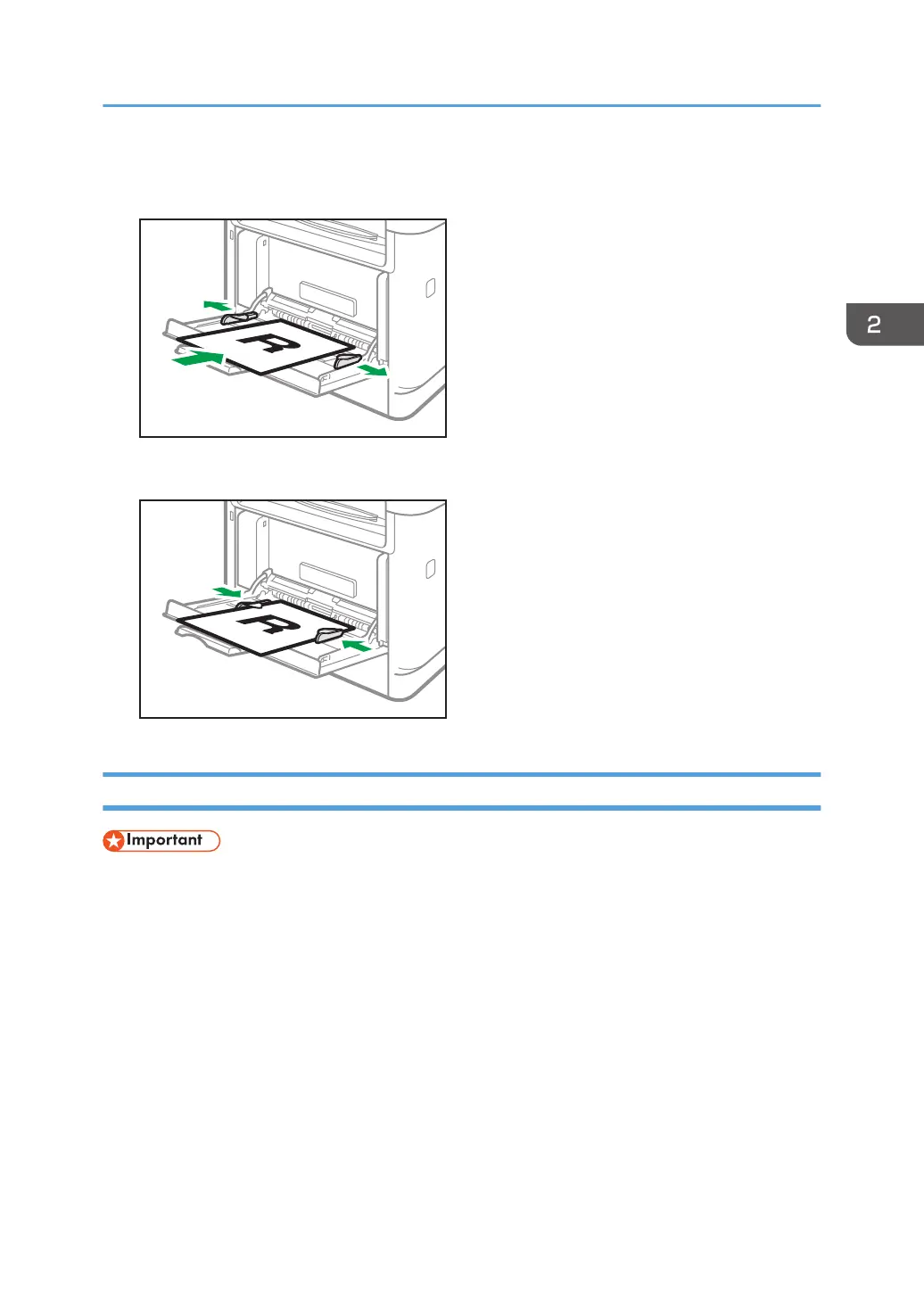 2. Slide the side fences outward, then load paper with the print side up, and push in until it