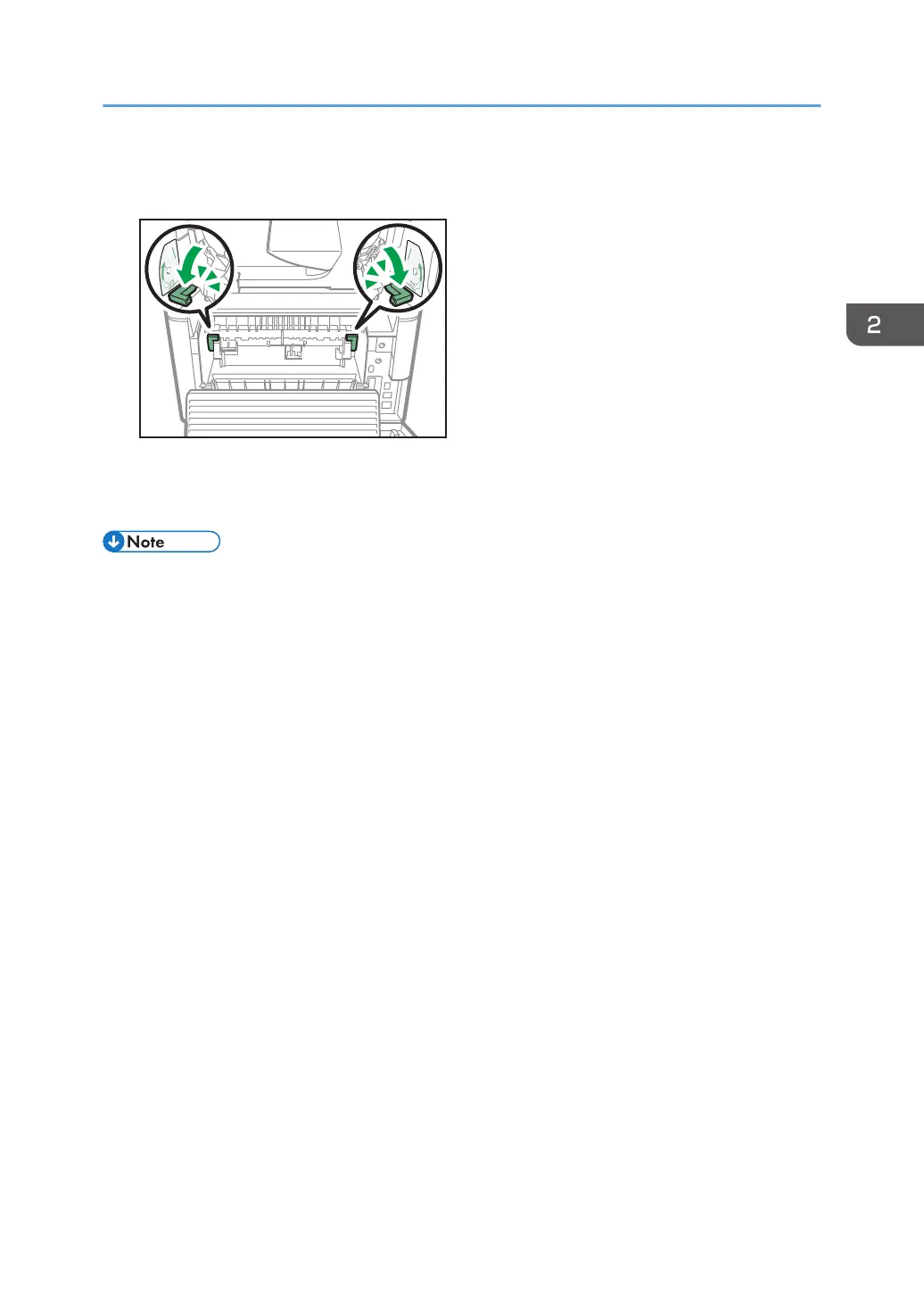 5. Lower the levers for printing envelopes on both sides to the position indicated with an