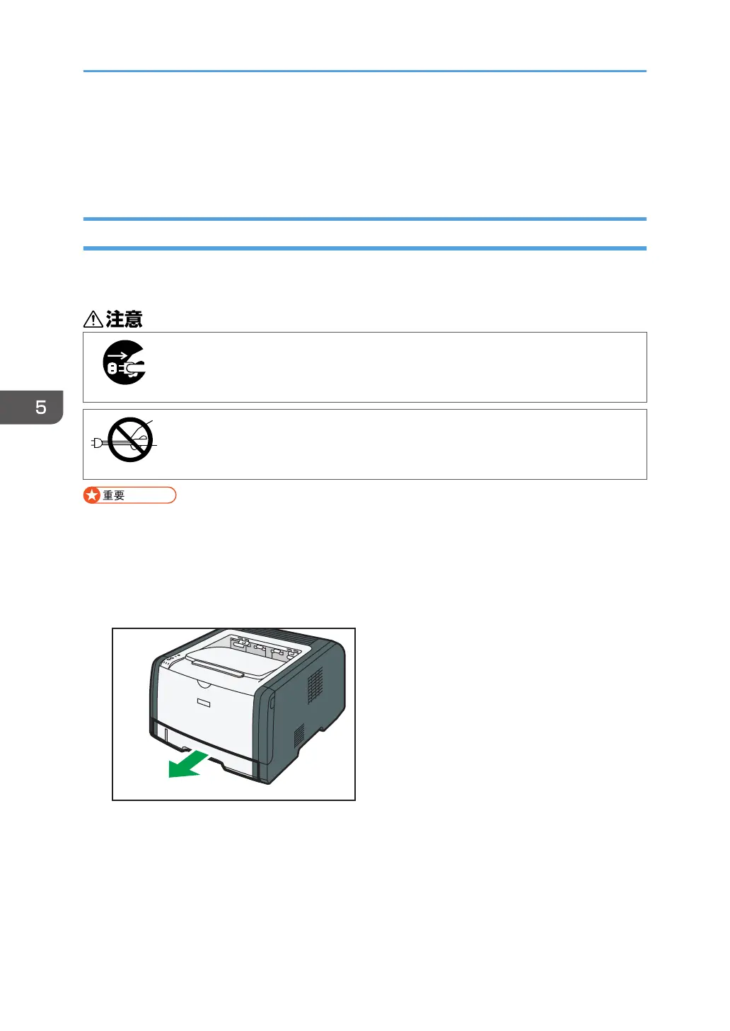 引き抜いたトレイは水平な場所に置いてください。また、トレイに用紙が入っている