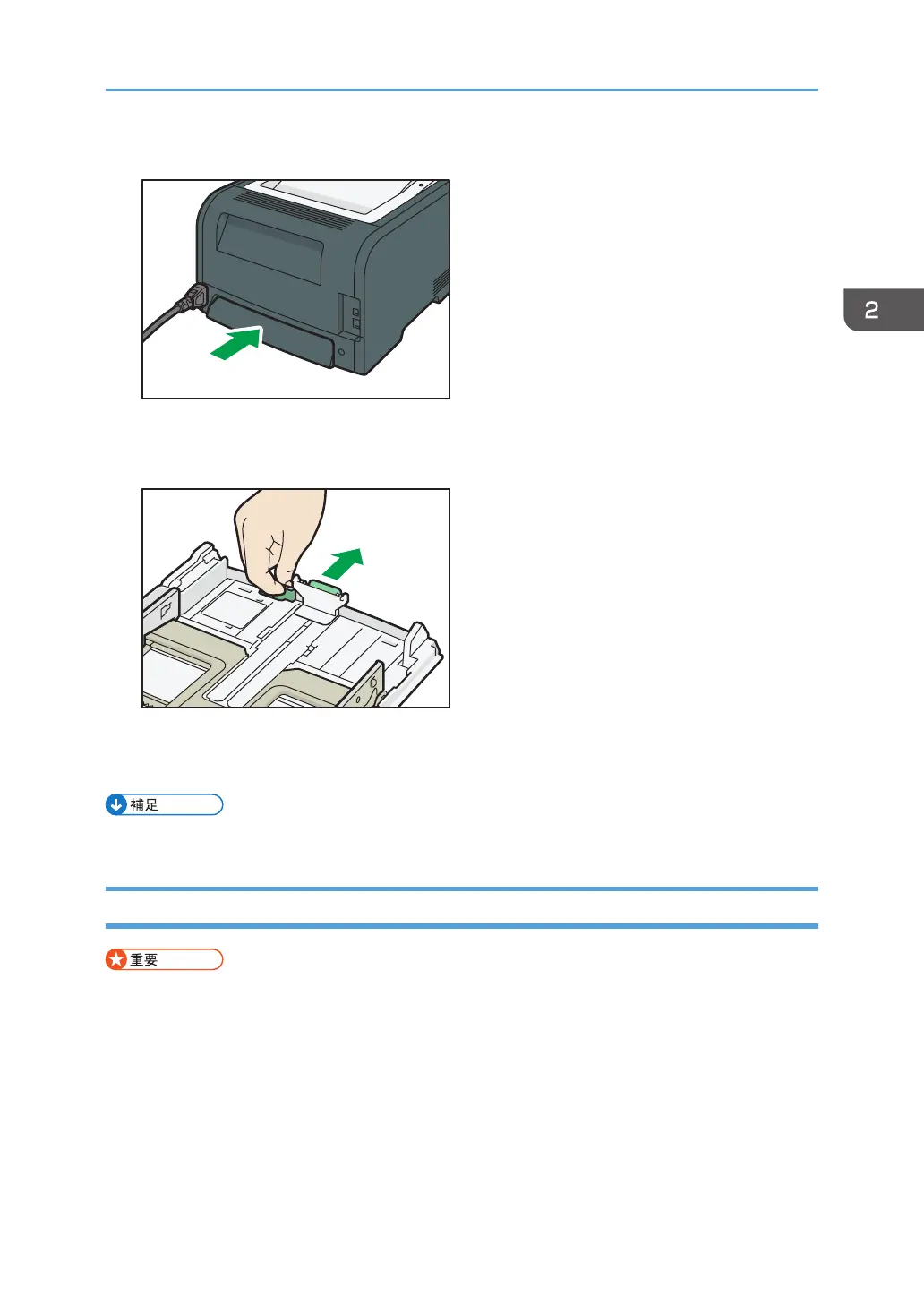 P.22「トレイ 1 に用紙をセットする」の手順 2~6 に従って、用紙をセットし
