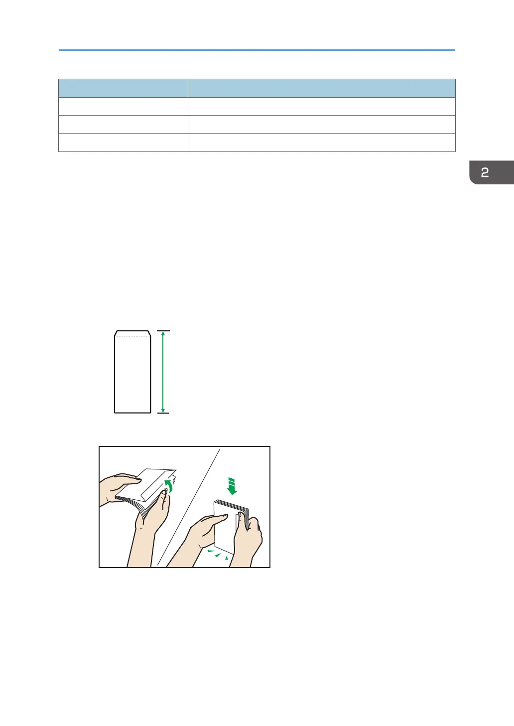 • 封筒をセットするときは、封筒をさばいて端をそろえます。