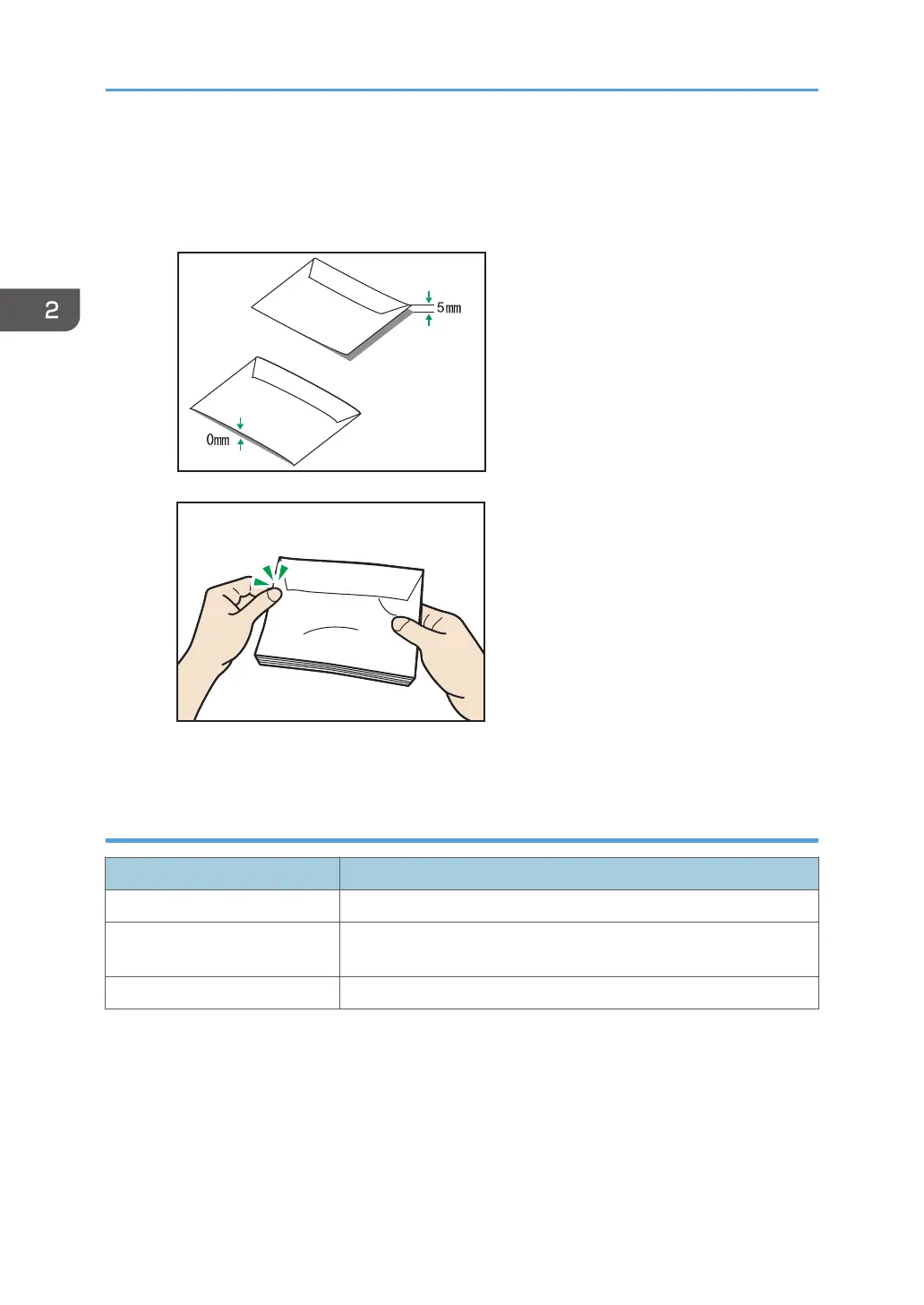 • 封筒が反っていると、正しく送られなかったり、印刷品質に影響がでることがあ
