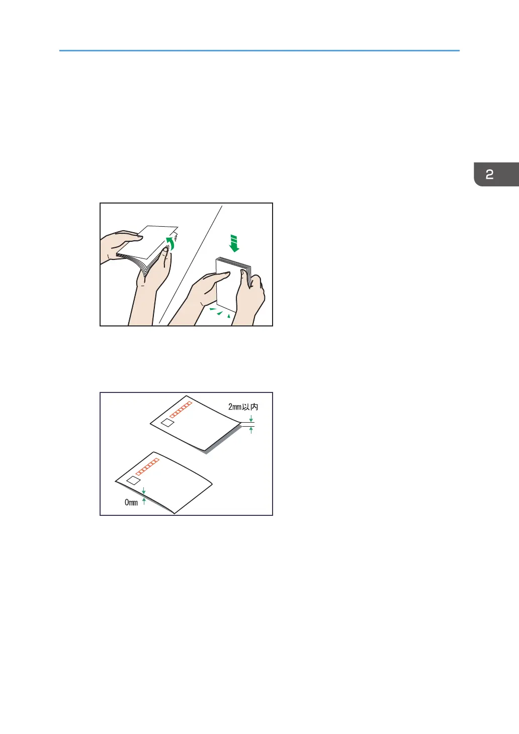 はがきをセットするときは、はがきをさばいて端をそろえてからセットしてくだ