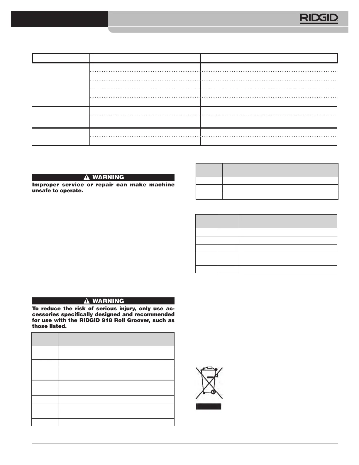 Tool should be taken to a RIDGID Authorized Indepen-