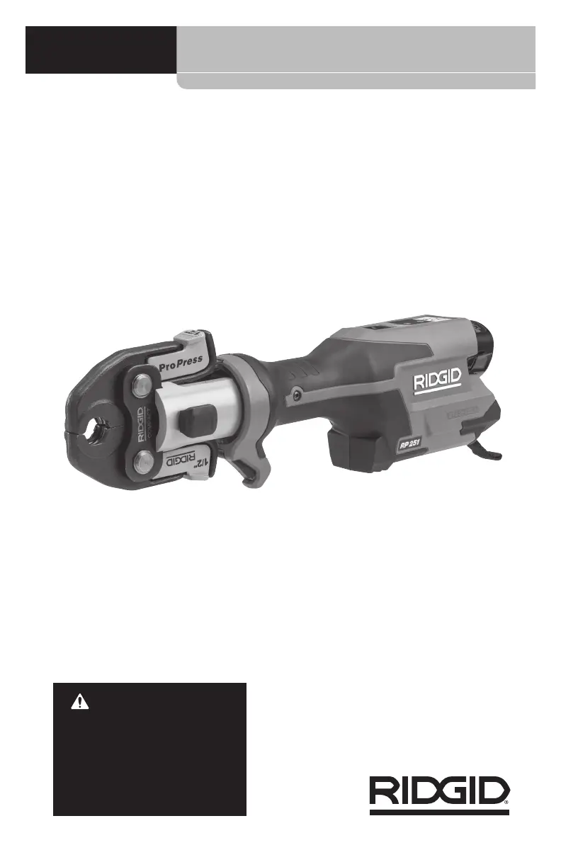 Bekijk gratis de handleiding van RIDGID RP 251, stel vragen en lees de antwoorden op veelvoorkomende problemen, of gebruik onze assistent om sneller informatie in de handleiding te vinden of uitleg te krijgen over specifieke functies.