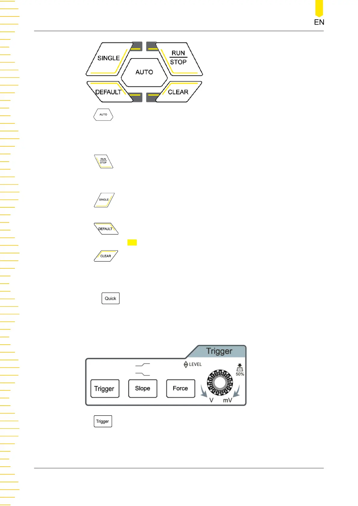 - is the RUN/STOP key. Press the key to set the oscilloscope's run state to