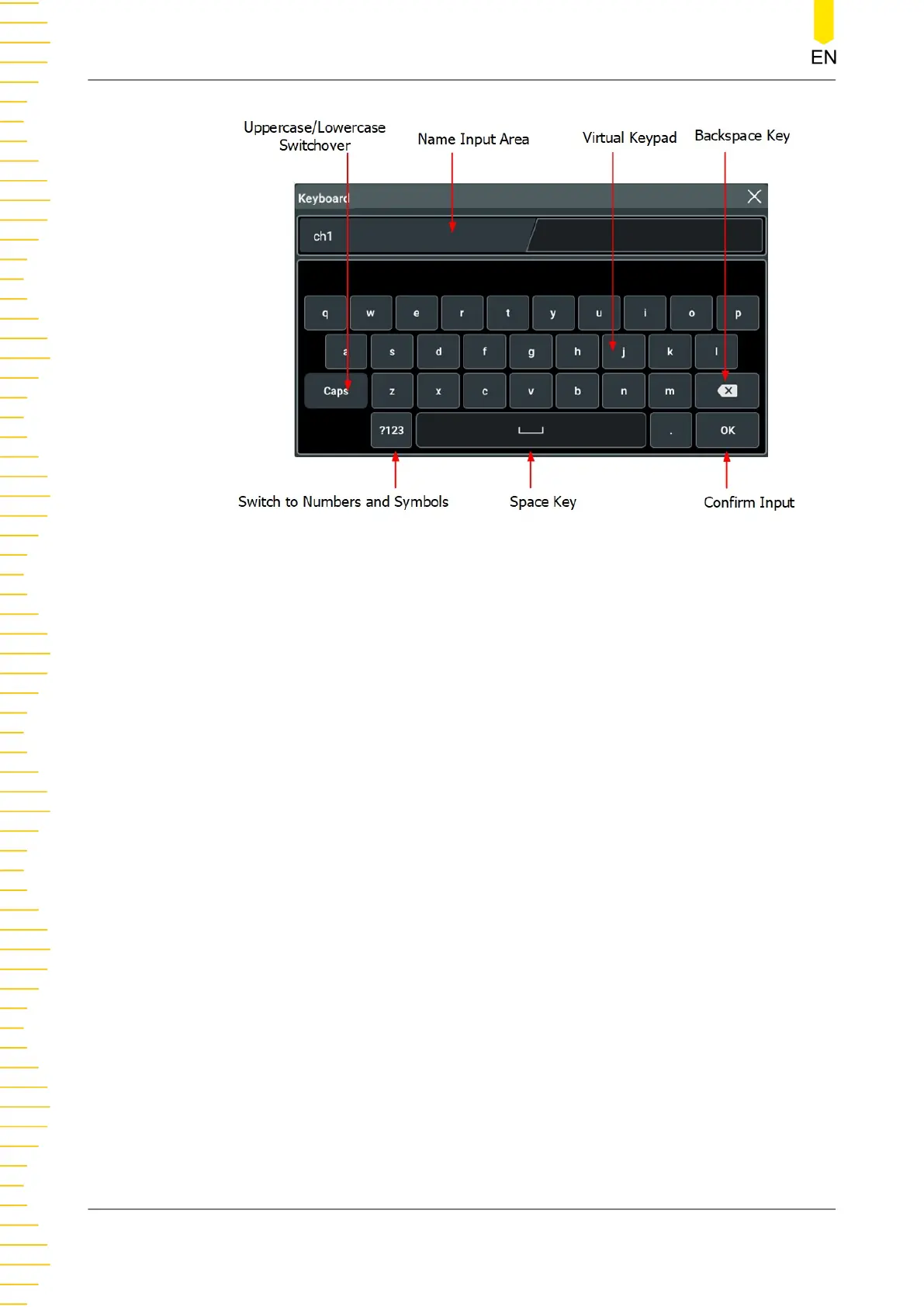 the upper-case and lower-case mode. If the Caps key is selected, input the upper-