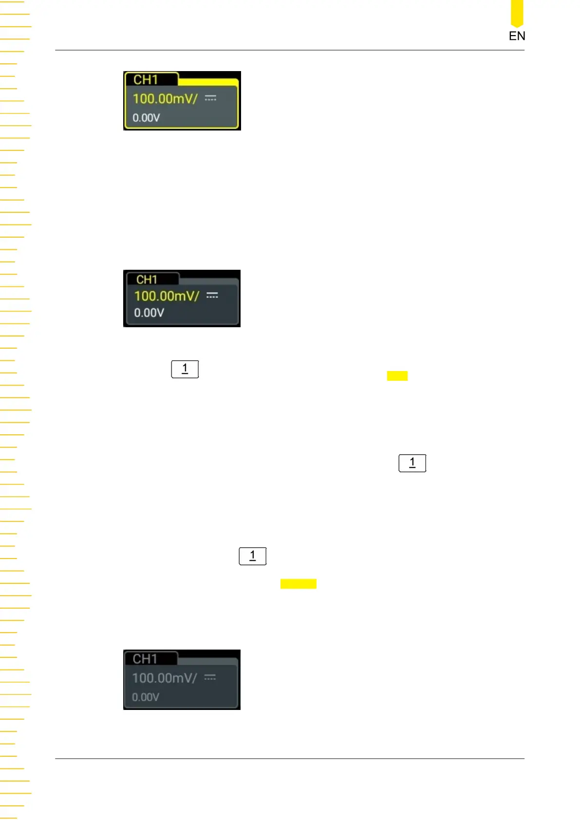 panel key to activate CH1. You can also select the CH1 tab in Vertical menu to