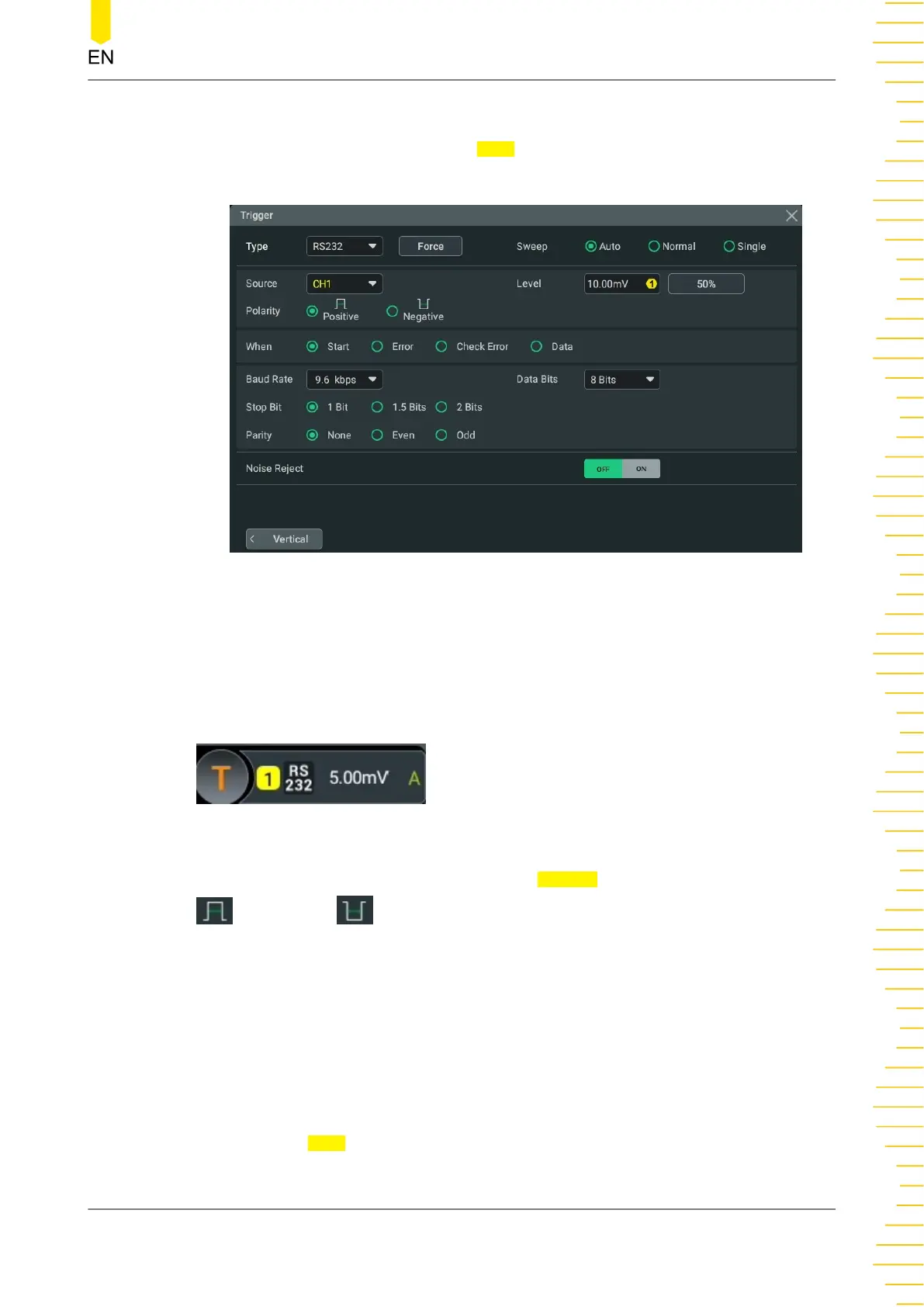 (including trigger type, trigger source, and trigger level) is displayed at the top of the