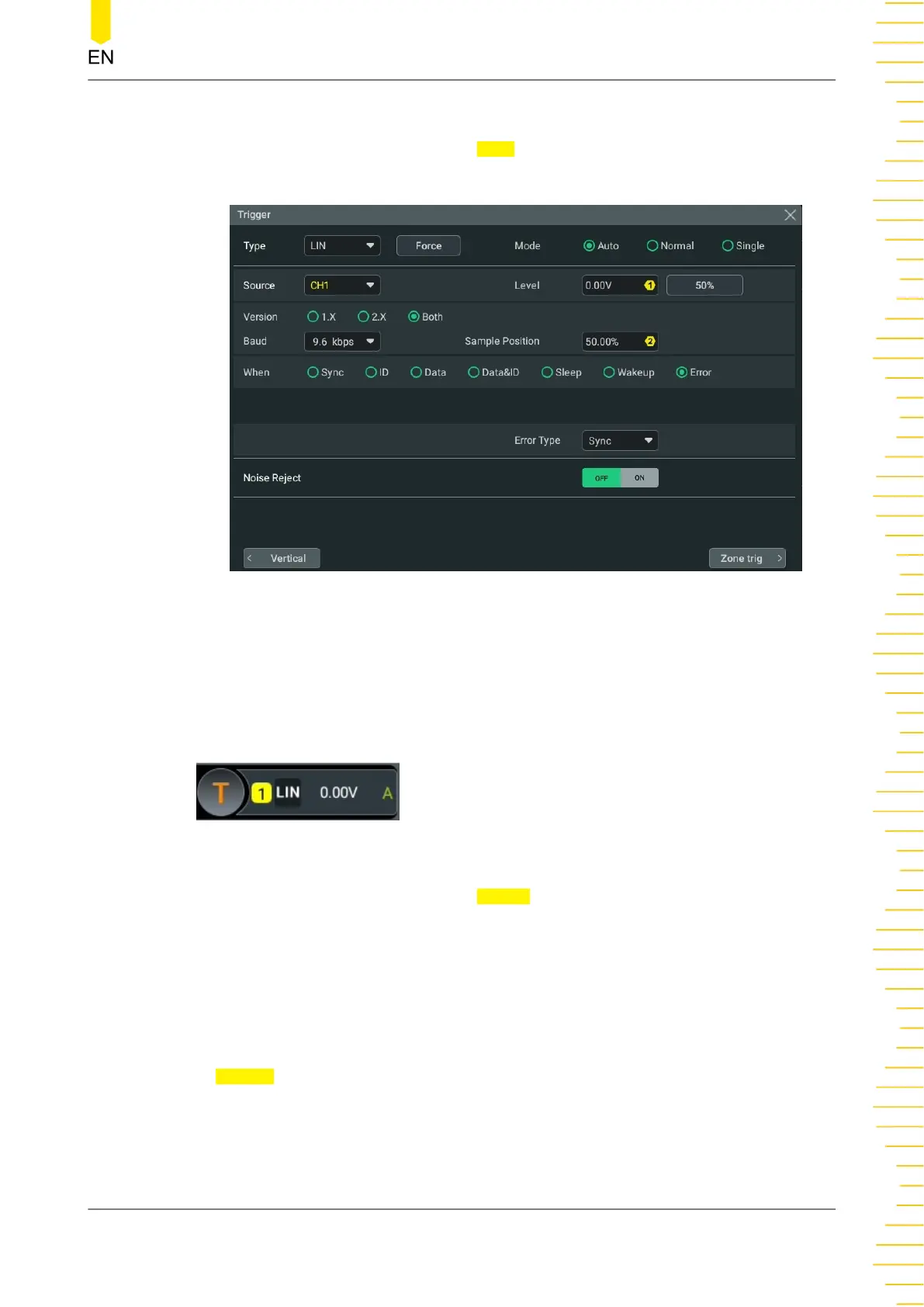 Then set the parameters for LIN trigger.