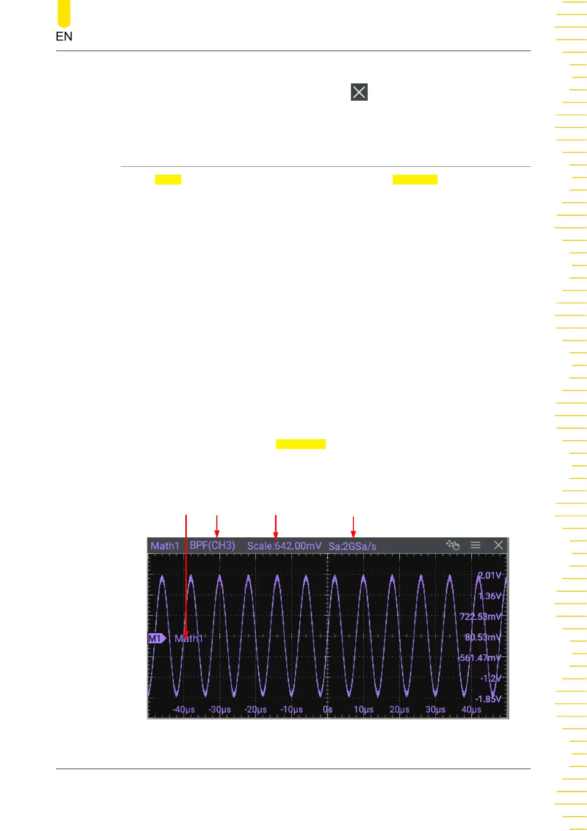 desired math operation. The arithmetic operations supported by this oscilloscope