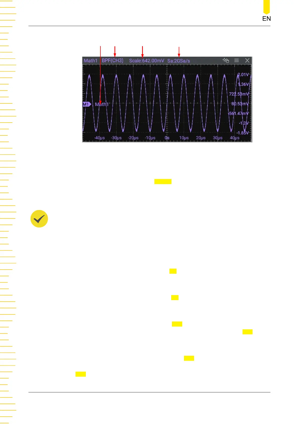 Math1, Math2, and Math3. The selected Math channel and operation status will automatically