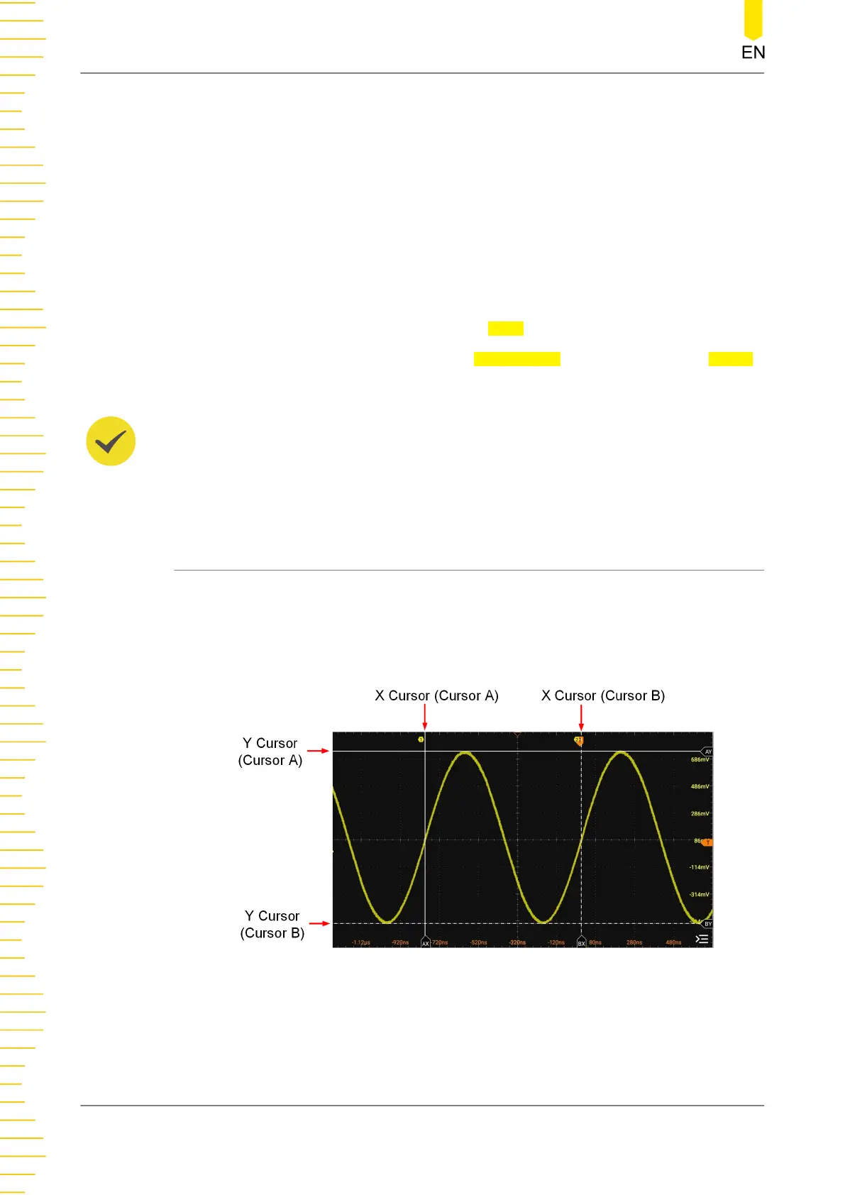 Voltage) of the selected waveform. Before making cursor measurements, connect the