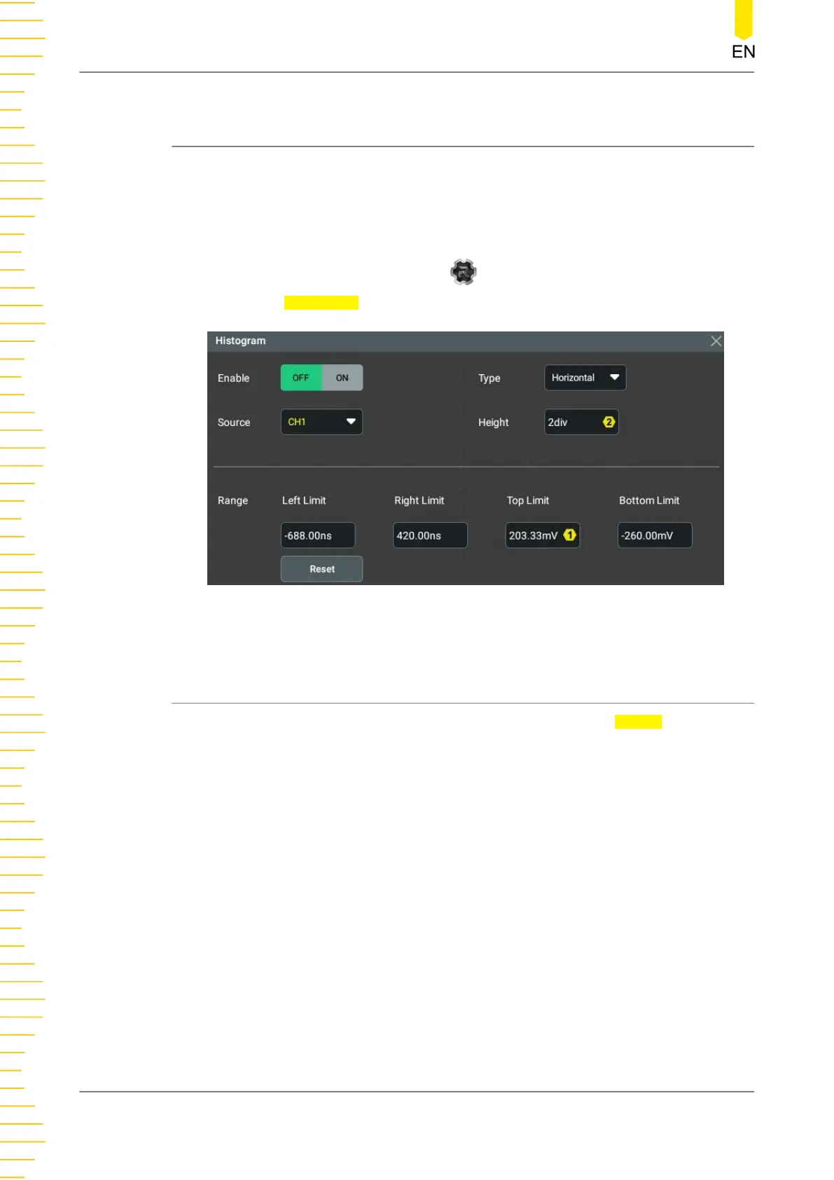 Here takes the horizontal histogram as an example. When enabled, the histogram is