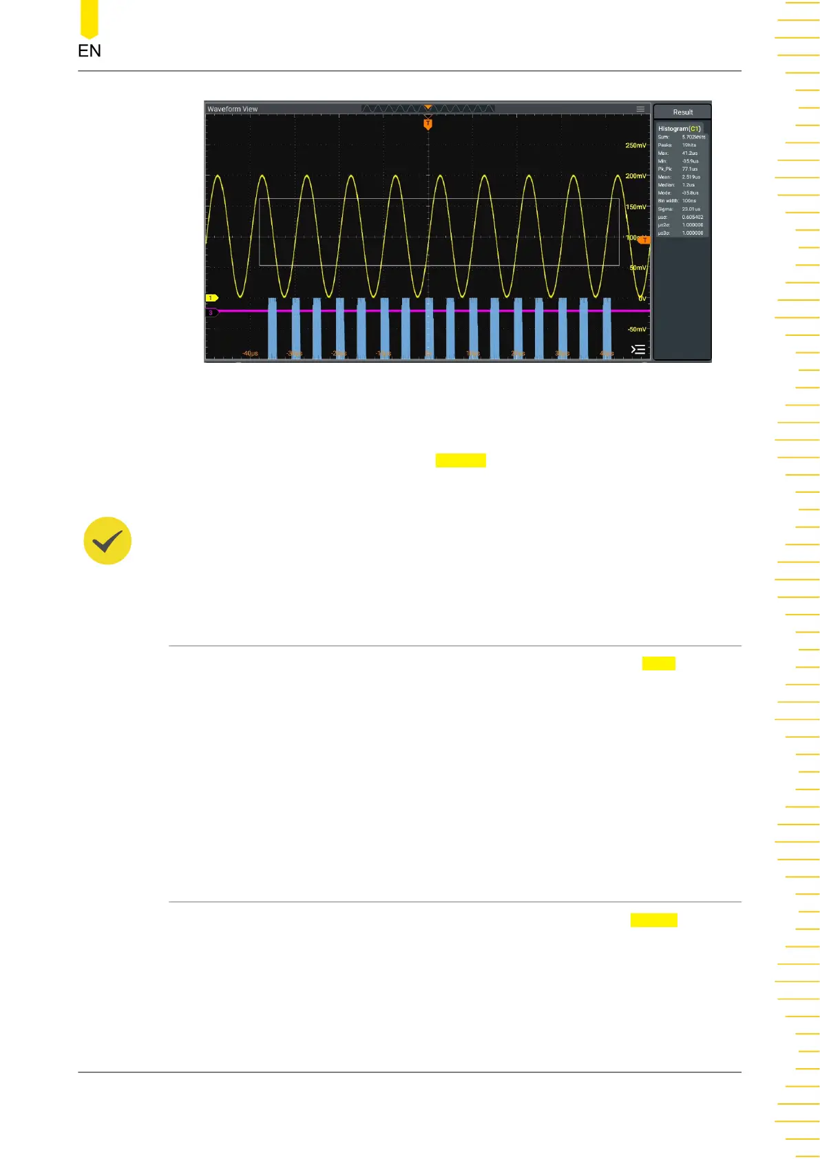 For the definitions of the measurement items in the histogram result, refer to