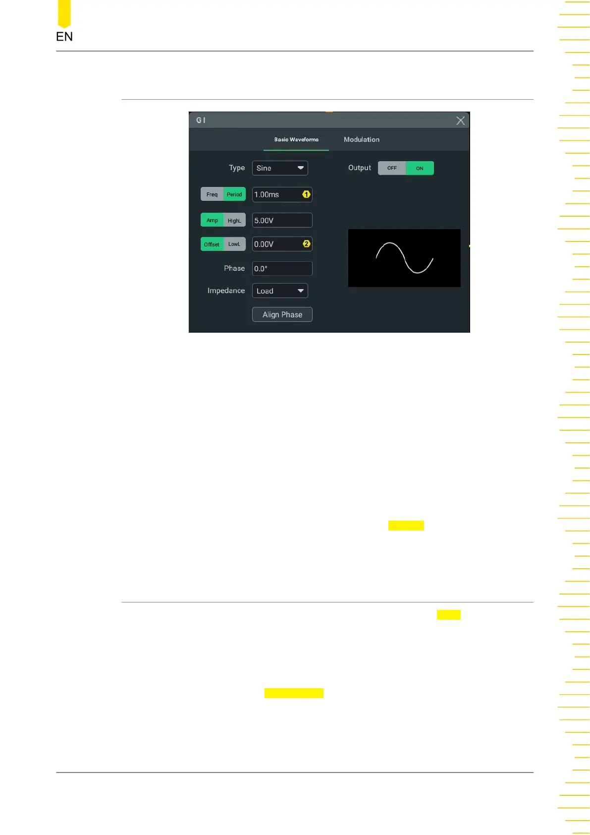 Click or tap the input field of Freq/Period to set the frequency or period of the