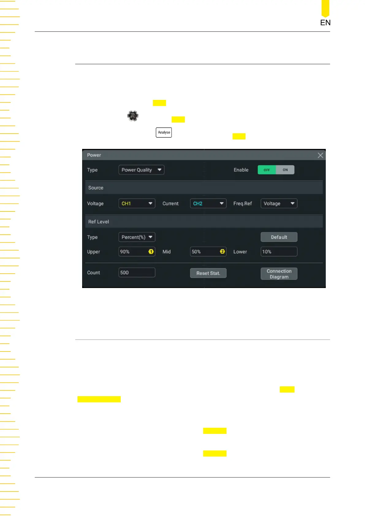 By analyzing the power quality, you can test the quality of AC input lines. The specific