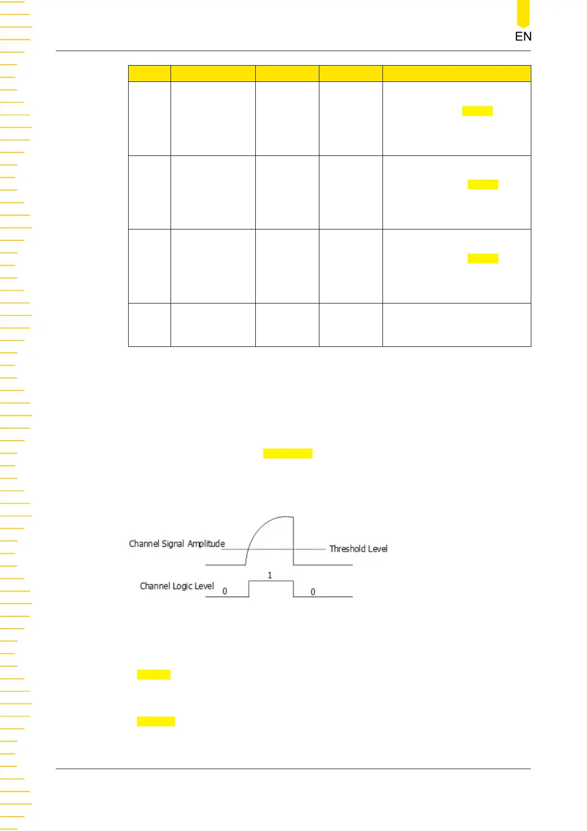 When the analog channel is set as the bus source, to judge logic "1" and logic "0" of