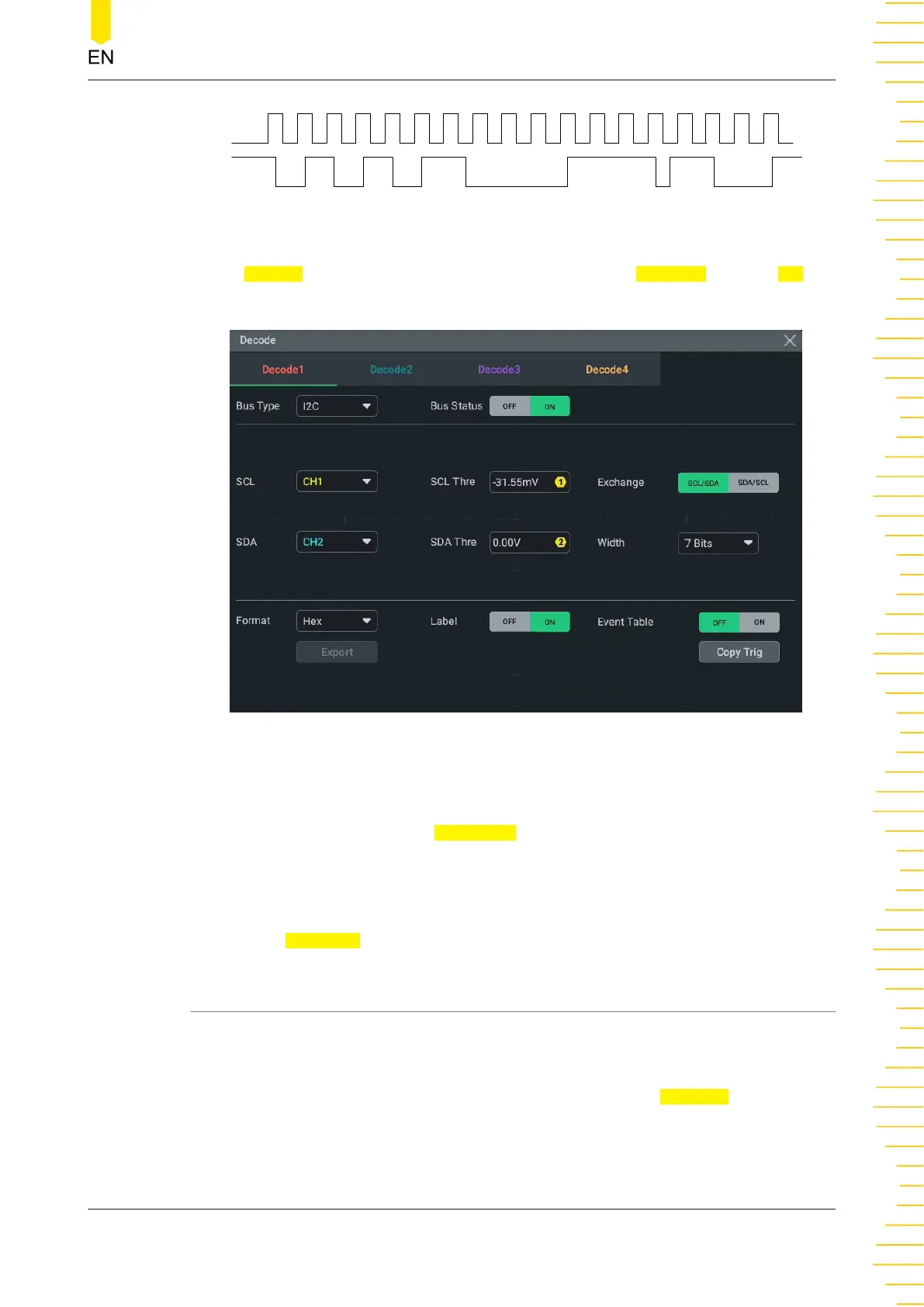 Copy trig indicates applying the trigger settings to the specified decoding setting.