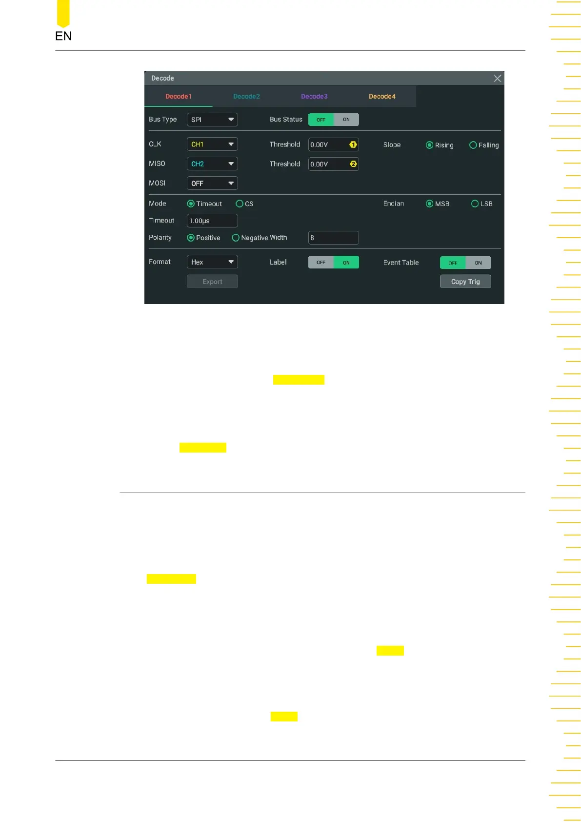 Copy trig indicates applying the trigger settings to the specified decoding setting.