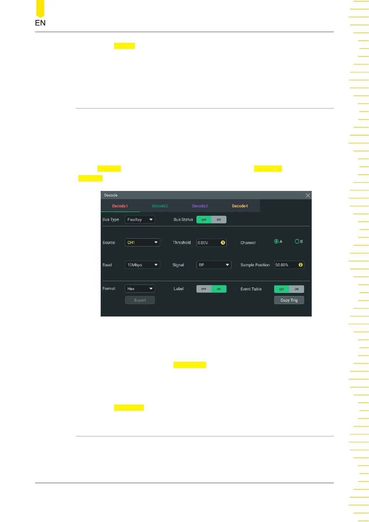 Copy trig indicates applying the trigger settings to the specified decoding setting.