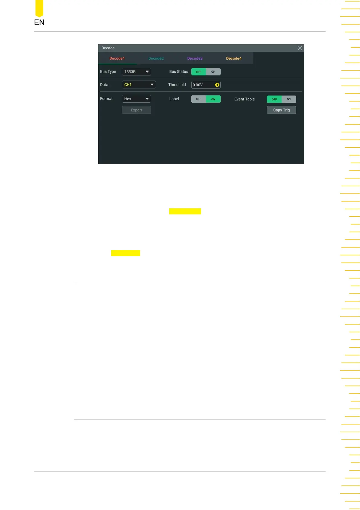 Copy trig indicates applying the trigger settings to the specified decoding setting.