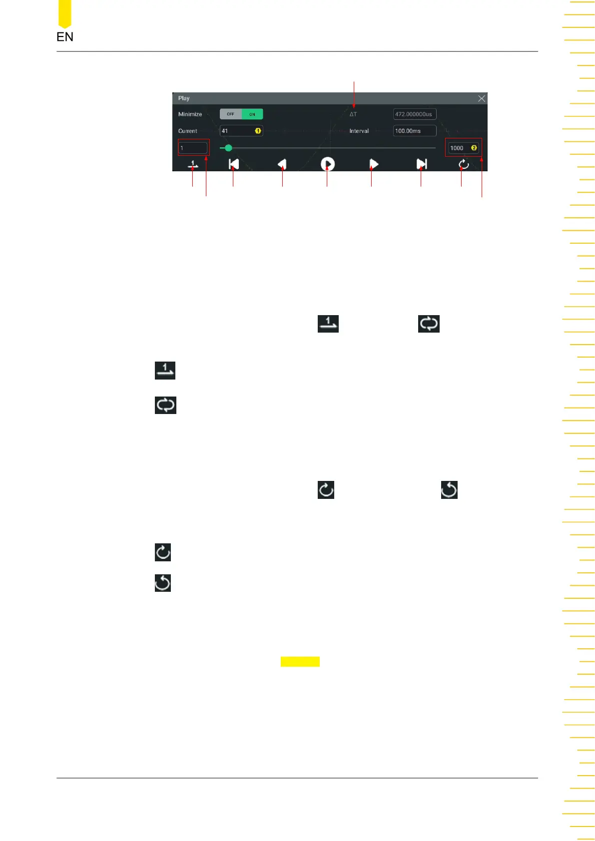 Plays back the waveforms clockwise ( ) or counterclockwise ( ). Click or tap