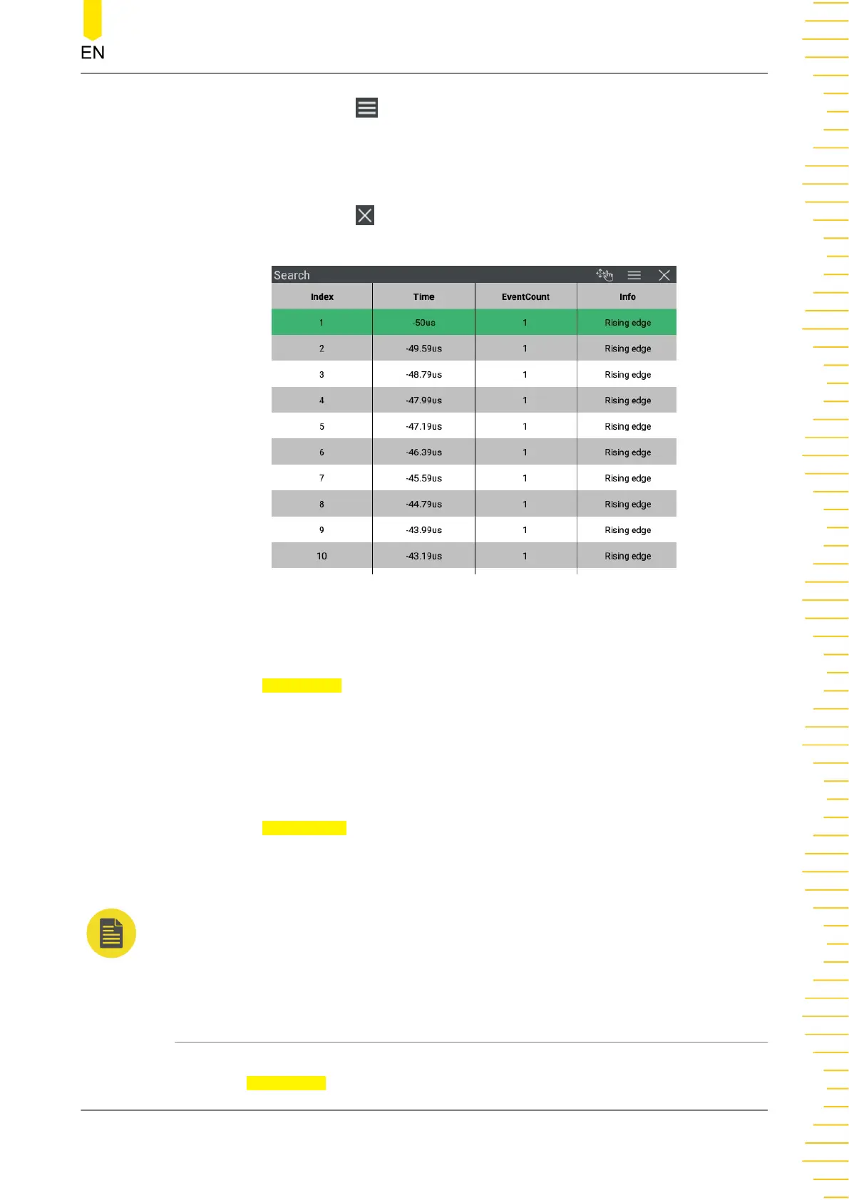 • Click or tap the icon at the upper-right corner of the table to close the mark