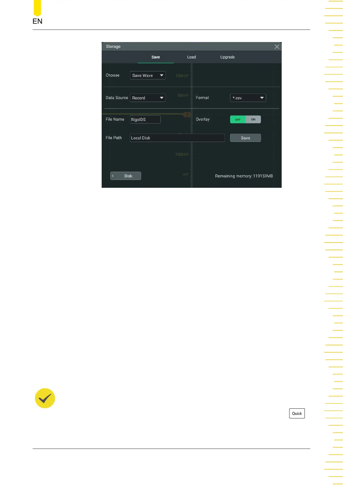 . When the quick operation type is set to "Save Wave", or set to "Save