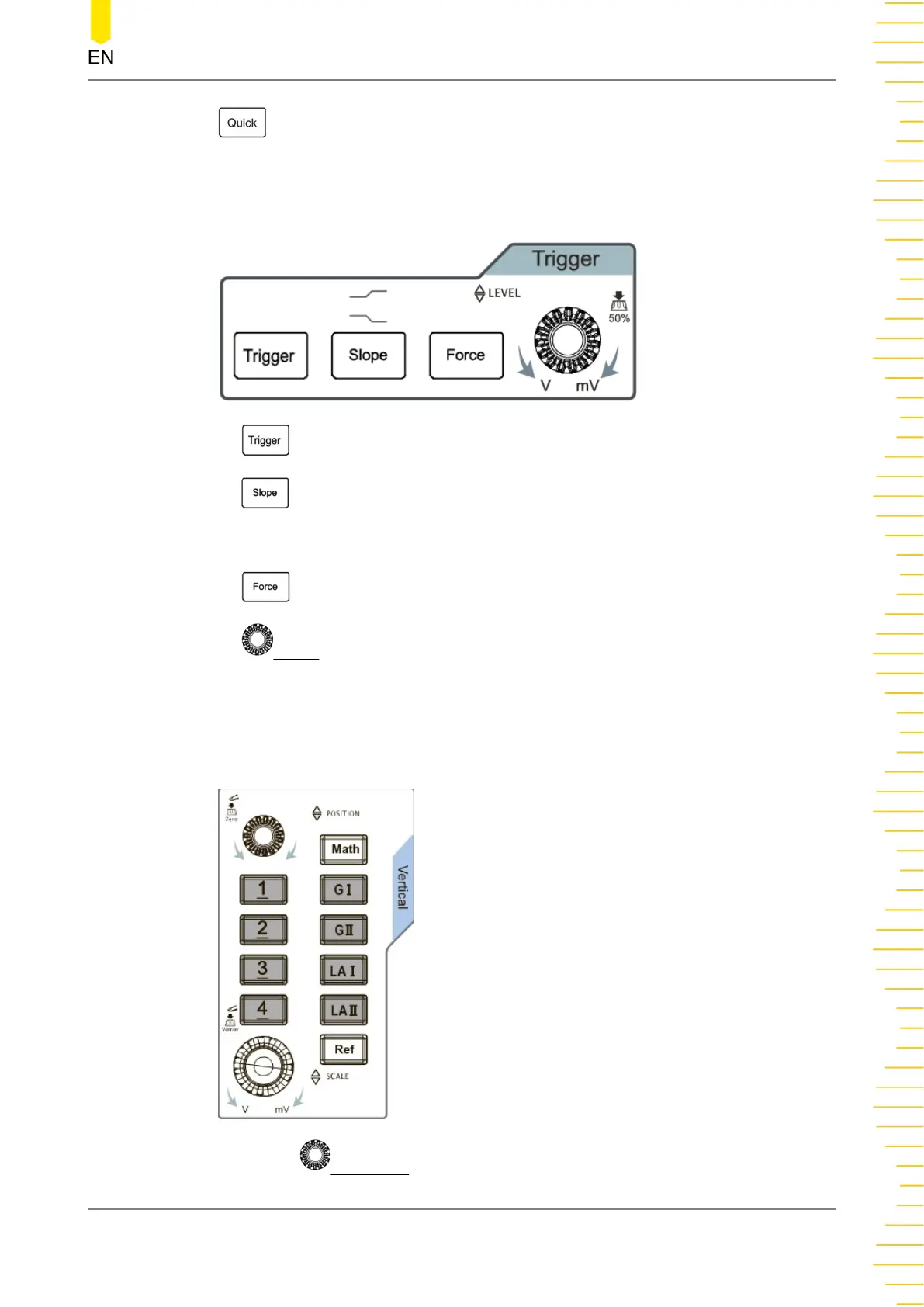 - Vertical POSITION: channel vertical position knob. Rotate this knob to