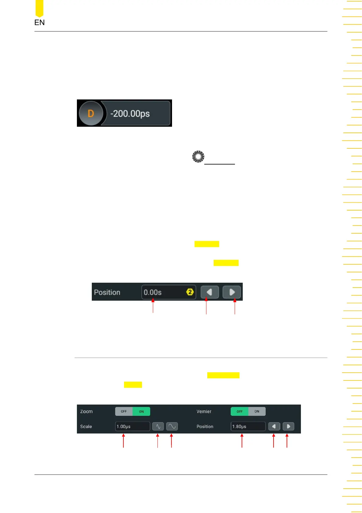 delayed sweep is enabled, you can set the scale and position for the delayed sweep.