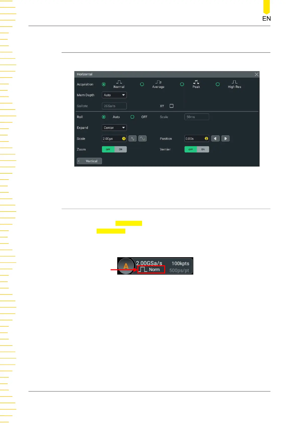 sample points. In the Horizontal system menu, click or tap the desired acquisition