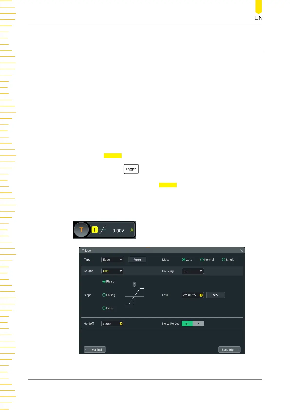 • In the Vertical menu, click or tap the Trigger button to enter the trigger setting