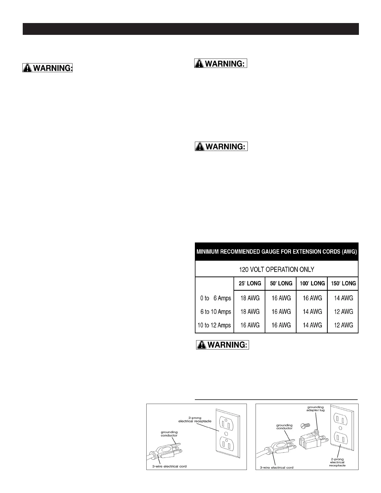 USE ONLY A 3-WIRE EXTENSION CORD THAT HAS
