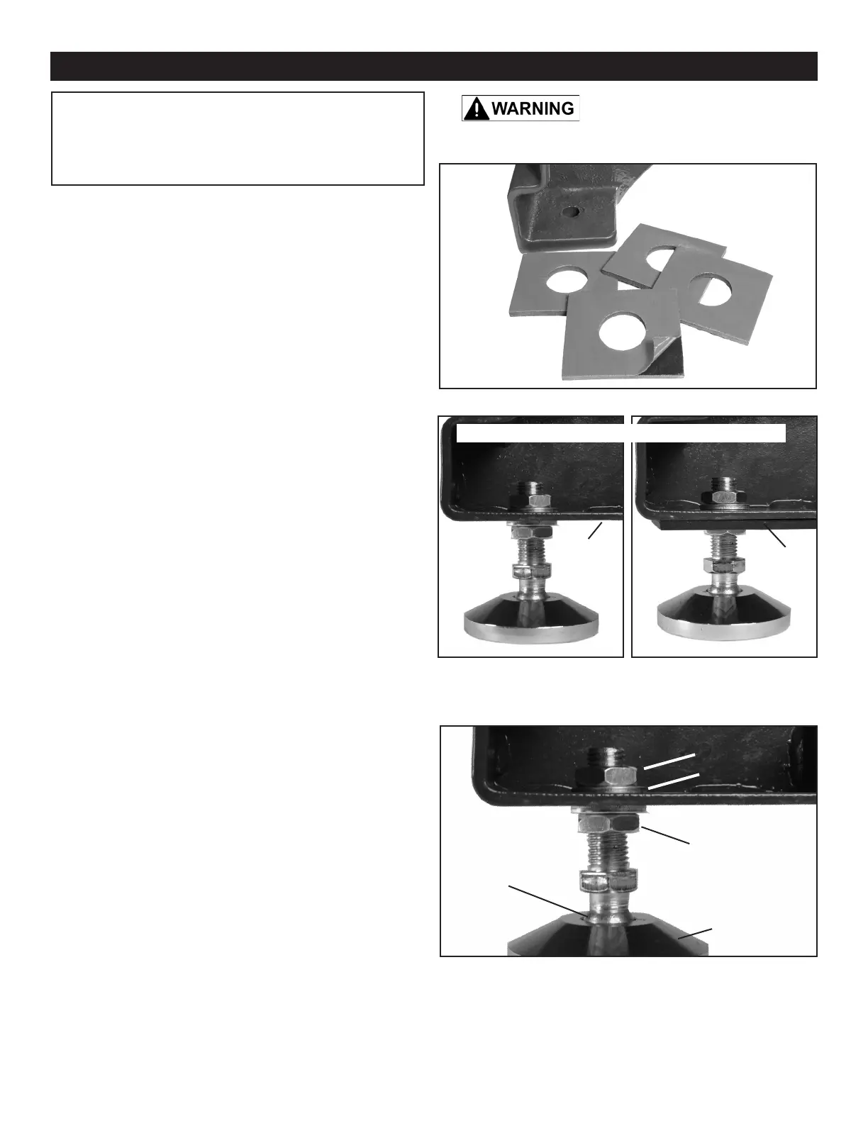 the oor. Fasteners (lag bolts, screws, washers, etc.) are