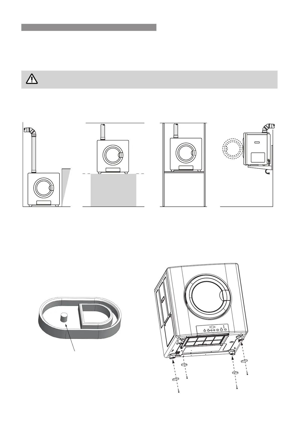 The rubber feet must be inserted before mounting the dryer on the bracket, bench top, or shelf. Before tting the