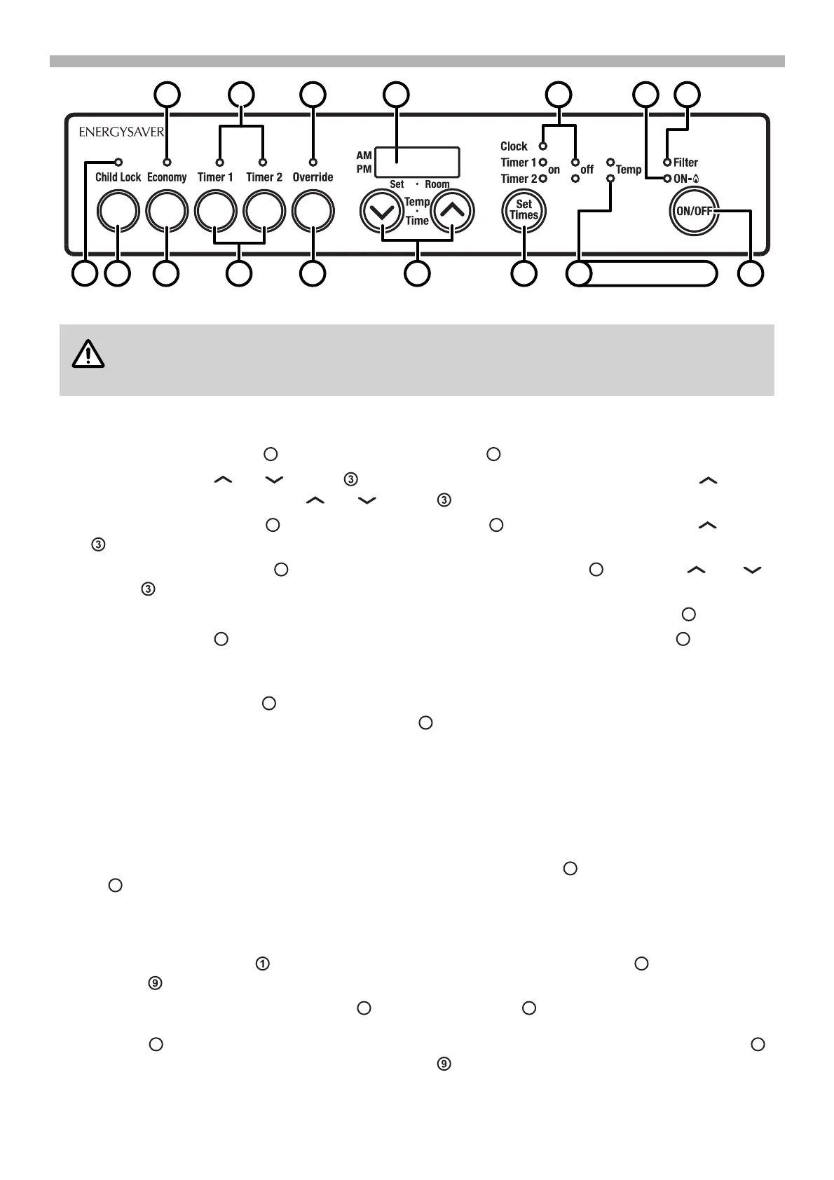 2. Press the Timer 1 and/or Timer 2 button(s) . The Timer indicator(s) will glow. The heater will now remain
