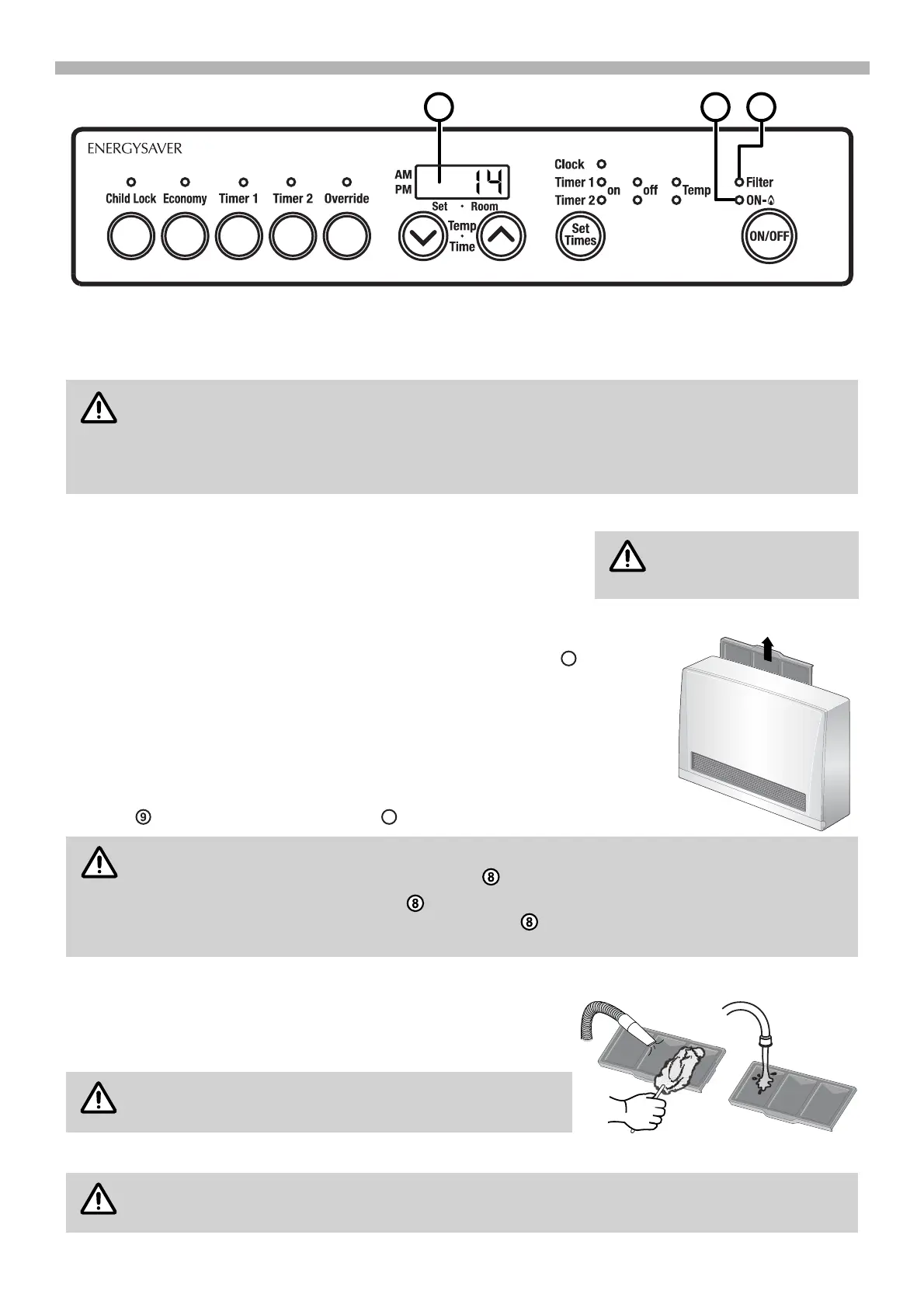 If the filter(s) becomes blocked during heater operation and requires cleaning, the ‘ON’